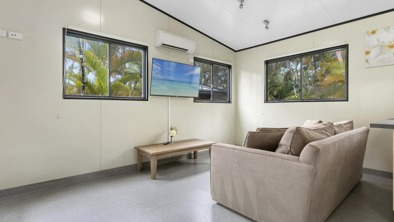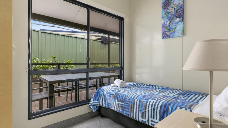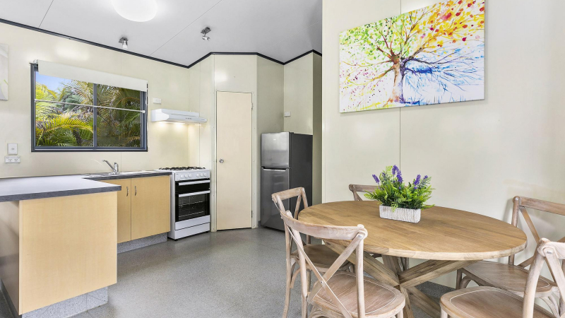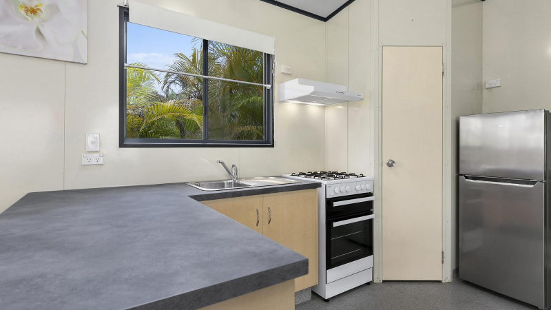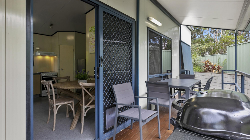 Bring your furry friend along for your stay! Our Superior Pet Friendly Cabin sleeps up to three guests with a queen bed in the main bedroom, a single bed in the second bedroom and a sofa bed for two, as well as a bathroom, living area, kitchen and laundry facilities. Also features a fully fenced yard and a private deck with BBQ.