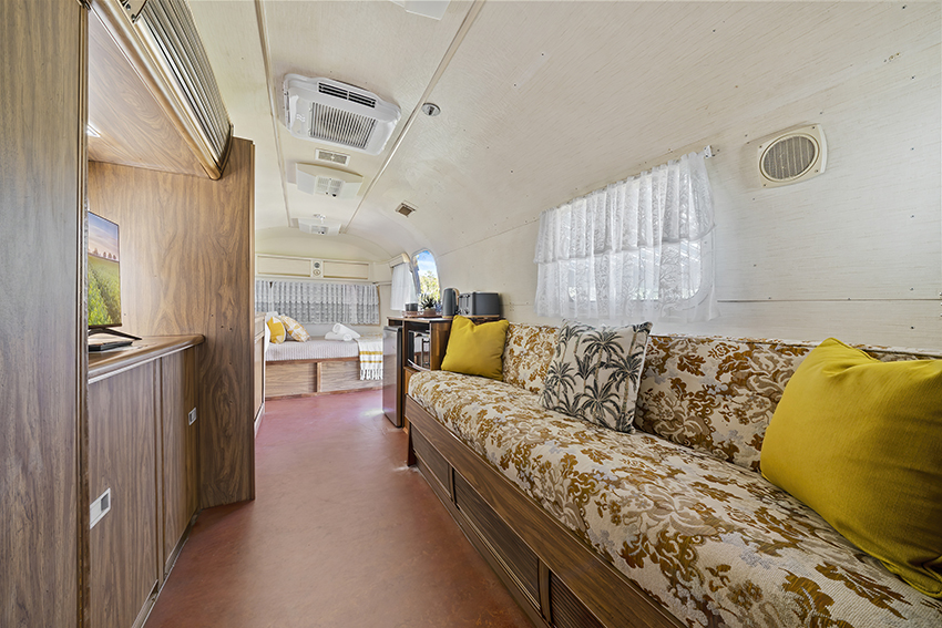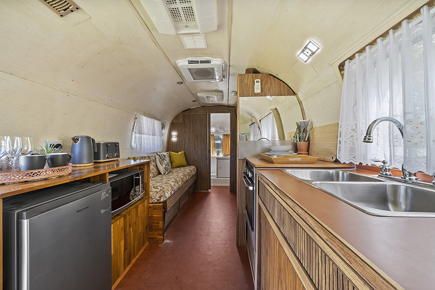 Enjoy a comfortable and retro Airstream stay. Our Airstream Tradewind sleeps up to two guests, with a double bed as well as air conditioning, heating, modern appliances a TV and a kitchenette within your Airstream, and just outside, enjoy a BBQ and seating under the awning in the fresh air. The toilet inside Sovereign is not in use, however you are within metres of the communal bathrooms.