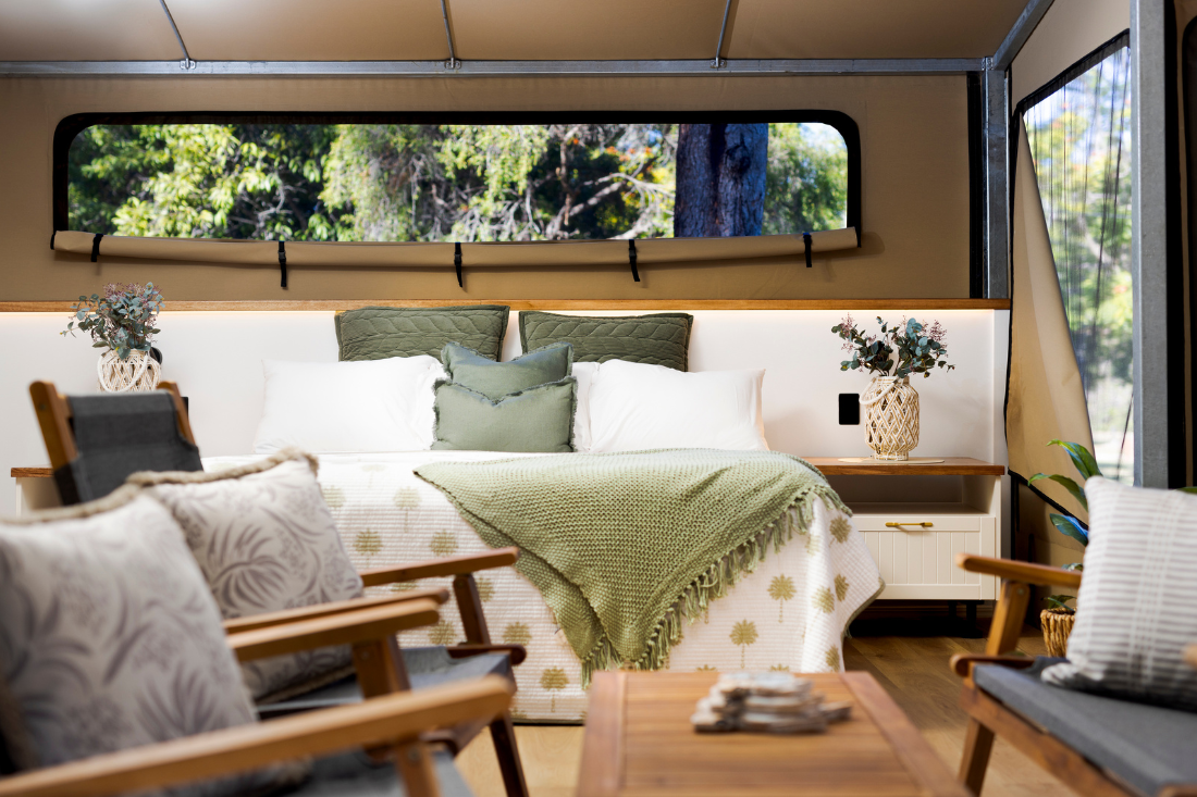 Whether you're after a romantic getaway or a family adventure, our Glamping Tents provide an unforgettable experience. Spanning 55 sqm, including a 15 sqm terrace, they’re designed for comfort and relaxation.