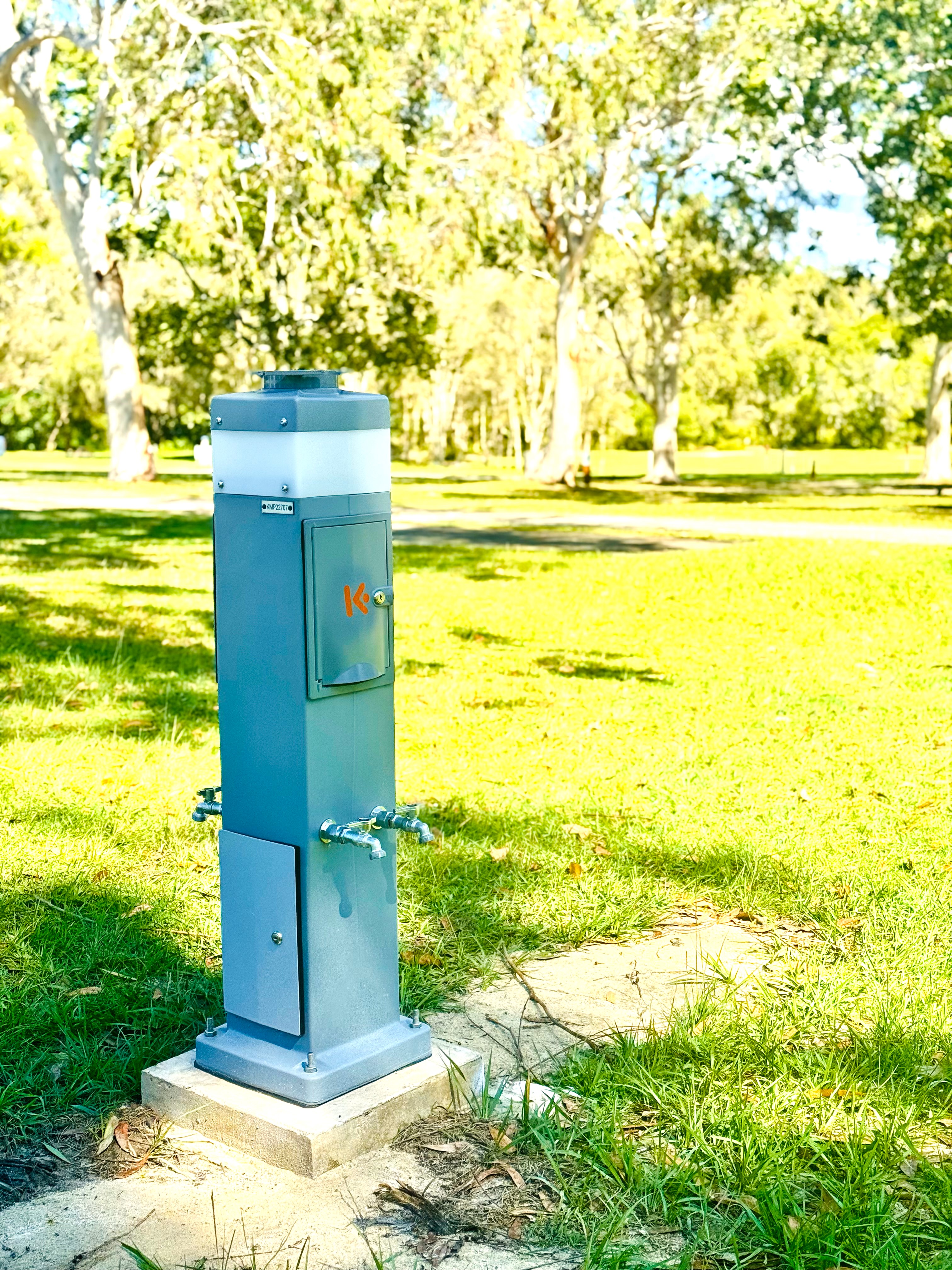 - Power outlet, water tap outlet, one car park per site.