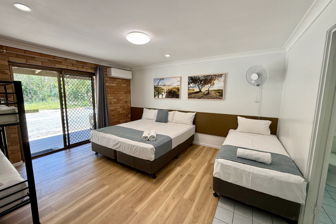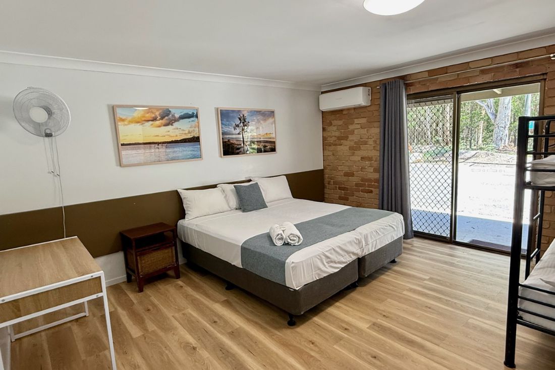 Bunk Beds: Please be advised: Work Law Health & Safety state that operators must comply with the Australian Standard AS/NZS 4220:2003 “Children under the age of 9 years are not permitted to use the top bunk, children must not play on top bunk”. Please take this into consideration when making your booking.