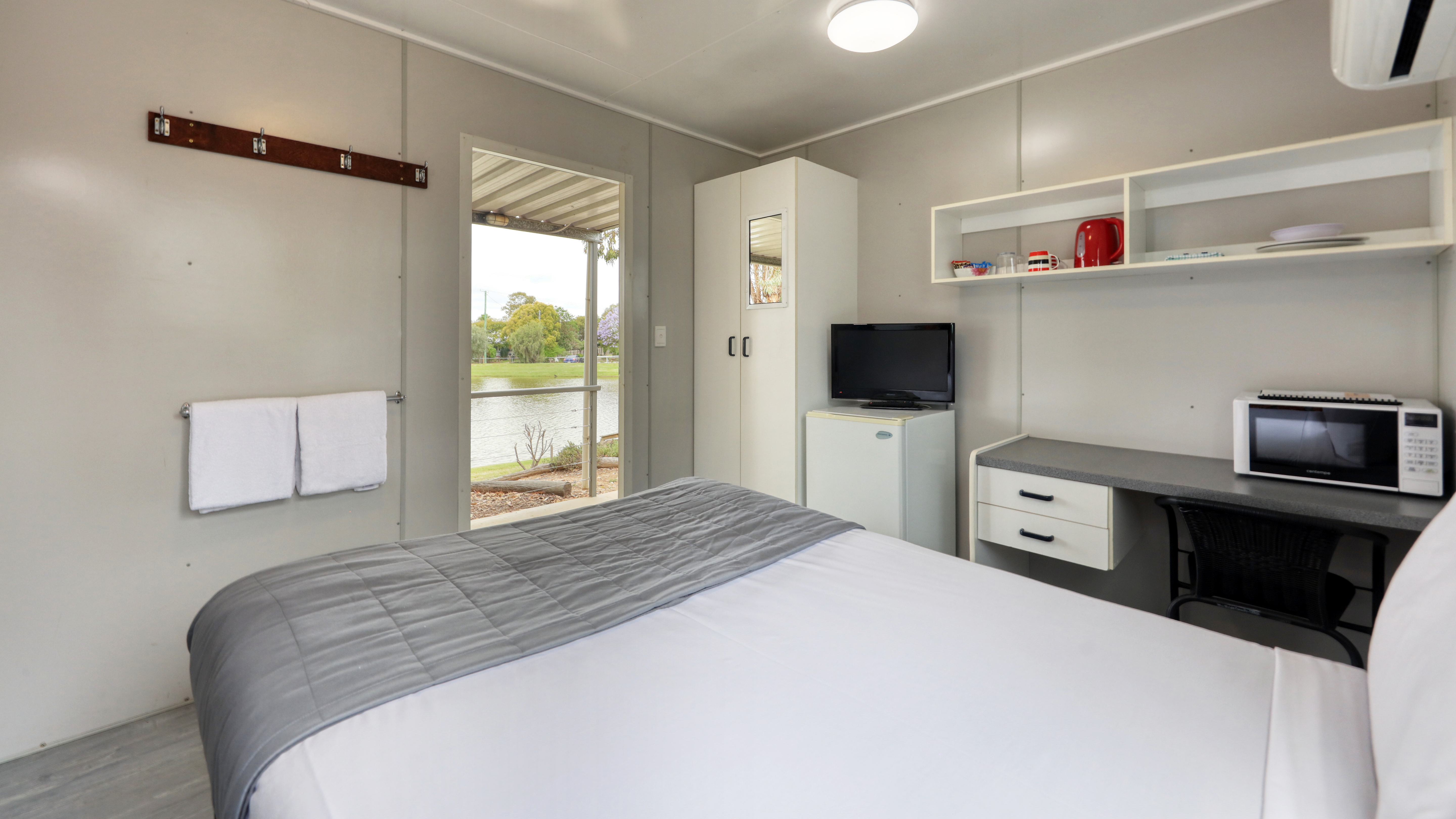 Our Lakeside Motel Rooms have a double bed, fridge, modern TV, air con, ensuite, tea & coffee facilities only.