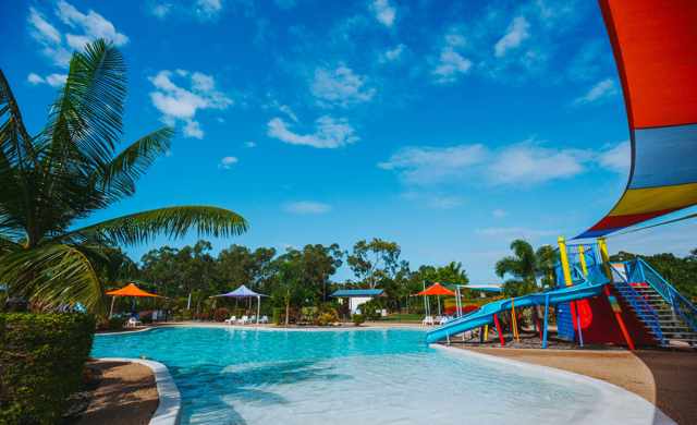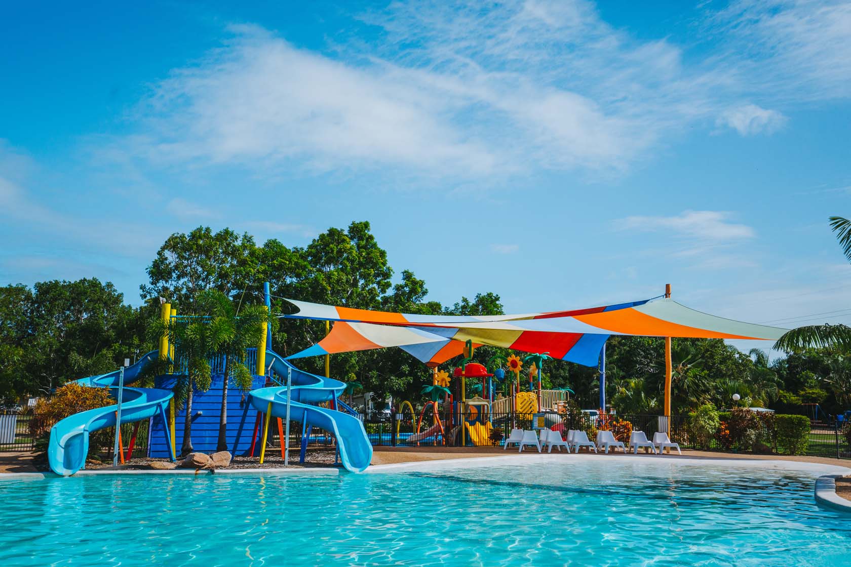 Set amongst palm trees and tropical landscaped grounds, BIG4 Ingenia Holidays Townsville is a pet friendly caravan park offering a range of accommodation including villas, cabins, powered and ensuite powered sites. The holiday park is set up to make the most of the 320 days of sunshine North Queensland enjoys each year with plenty of exciting park facilities including a resort pool, water park, mini golf, jumping pad, playground. Located a short 10-minute drive from the airport and 16 kilometres from Townsville CBD, you’ll find the city’s main attractions, such as The Strand, Castle Hill and Botanic Gardens a delight. Please note that the drop slides are now closed to maintain safety standards. Explore our full list of exciting park features still available for guests to enjoy!