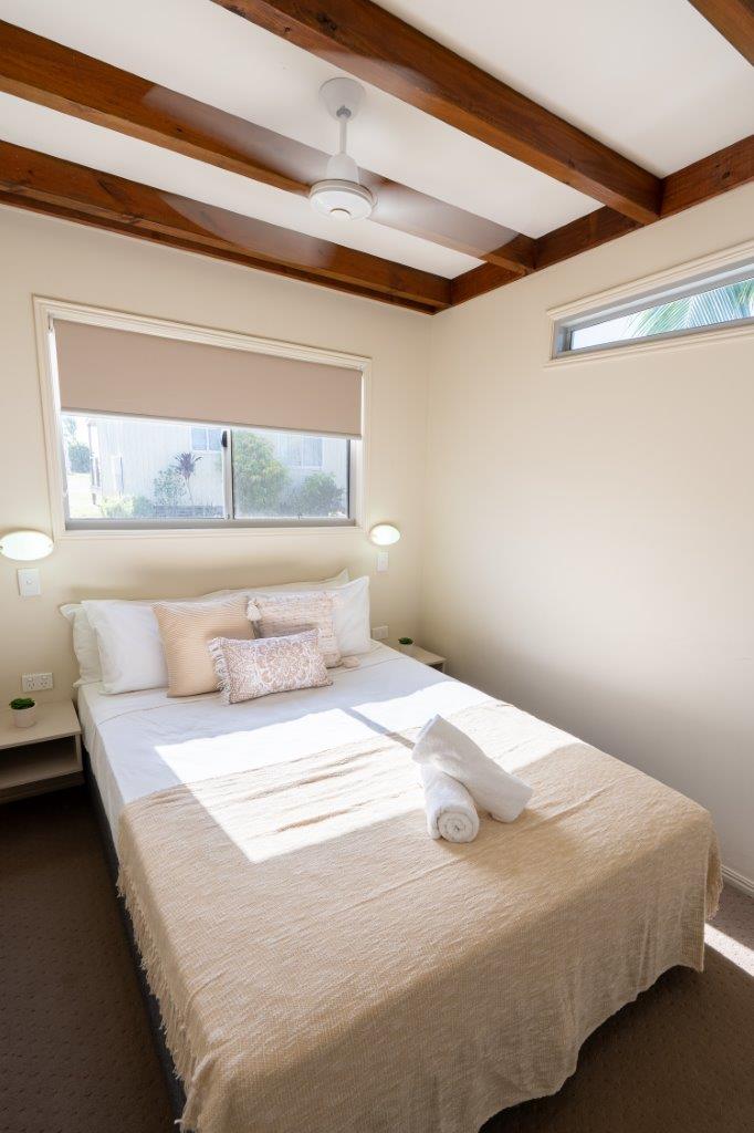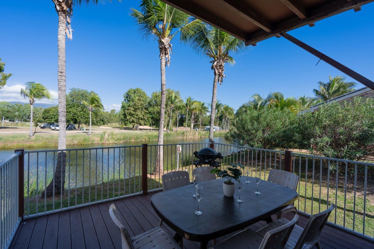 Unwind in our 2 Bedroom Lakefront Cabin, set in tropical surroundings. This cabin suits a family of six or a couple's retreat. Sleep soundly in the main bedroom with a queen bed, while the second bedroom has two sets of single bunk beds. Enjoy a modern bathroom, a kitchenette, and an open living and dining area—everything you need for a great holiday. Relax on your private balcony and soak in the refreshing coastal air.