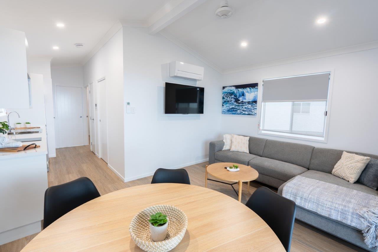 These brand-new Villas are absolute beachfront, with stunning views out over the ocean towards the Great Barrier Reef. With a fantastic two bedroom layout, including a queen bed in the main, and two double bunks in the second bedroom, our amazing villas are the ideal getaway location. Close your eyes and imagine waking up to the sound of waves, the kids excited and ready for adventure, and the bright blue ocean at your door. Sounds like a holiday to remember.