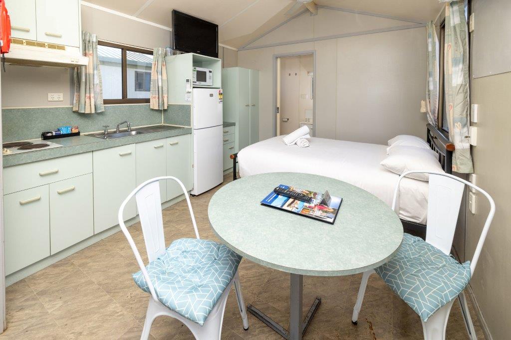 Pet-friendly and budget-friendly, this studio suits up to four guests with a double bed and single bunk. The open-plan space includes air conditioning, private bathroom, kitchenette with fridge, microwave and portable double cooktop, and a private balcony. Ideal for couples or small families travelling with pets.