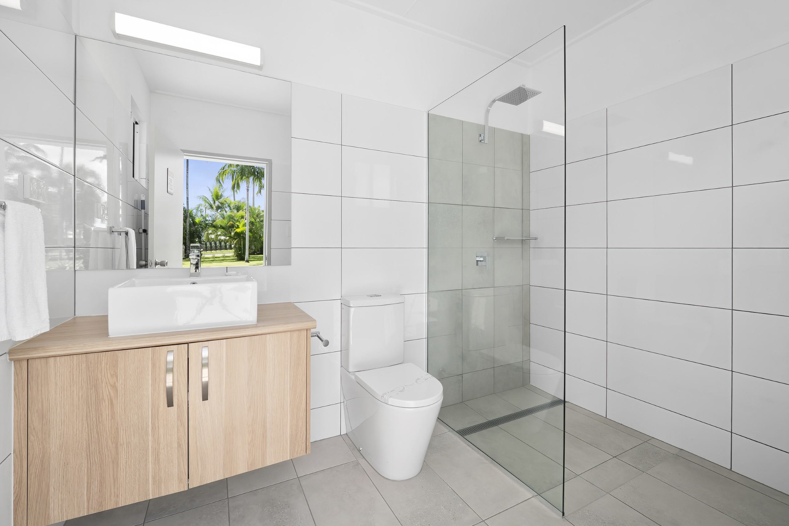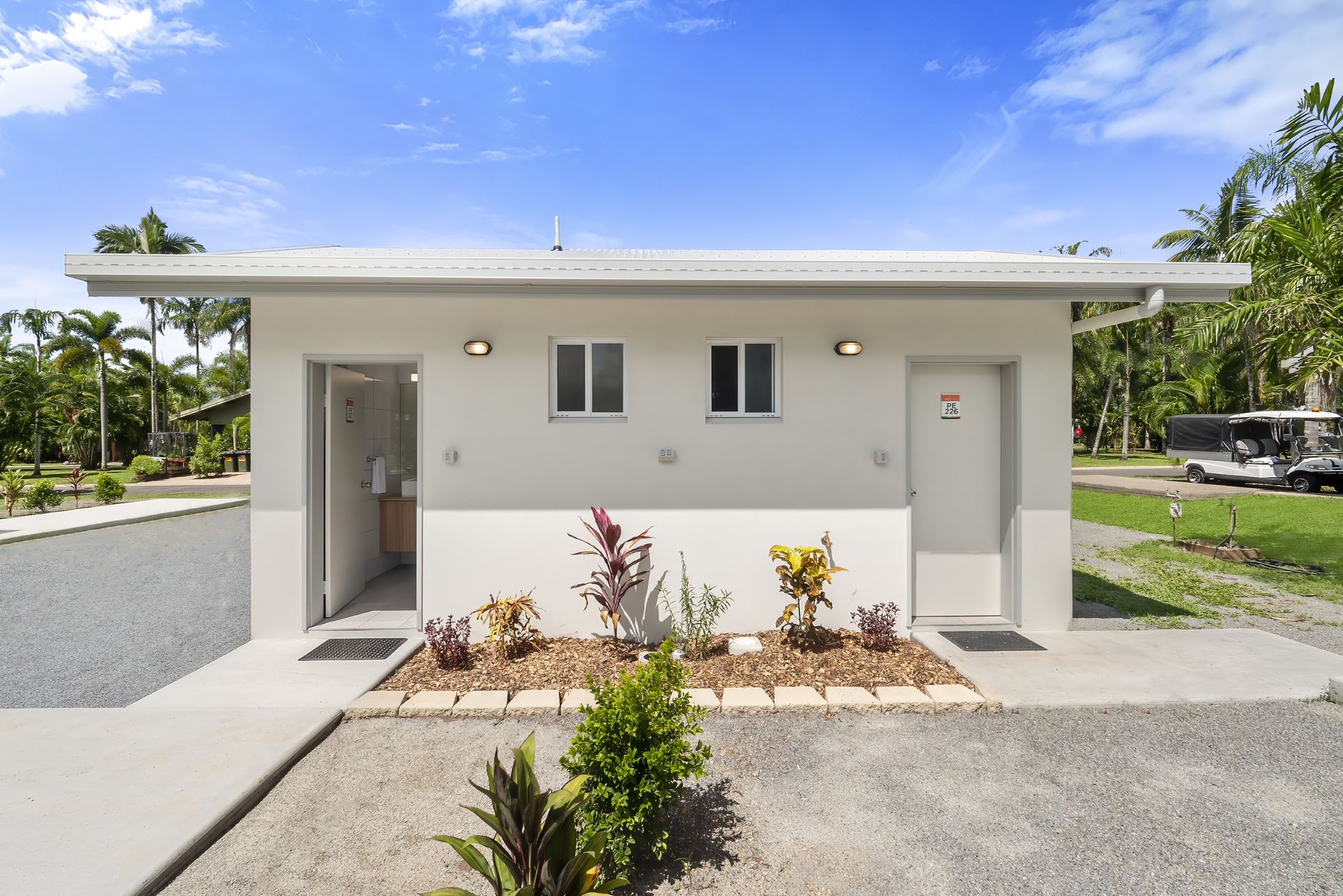 Take your caravan stay to the next level with a bit of private luxury! Our luxurious Ensuite bathroom sites are spacious and shady on a concrete slab with a modern design, shower, toilet and vanity.