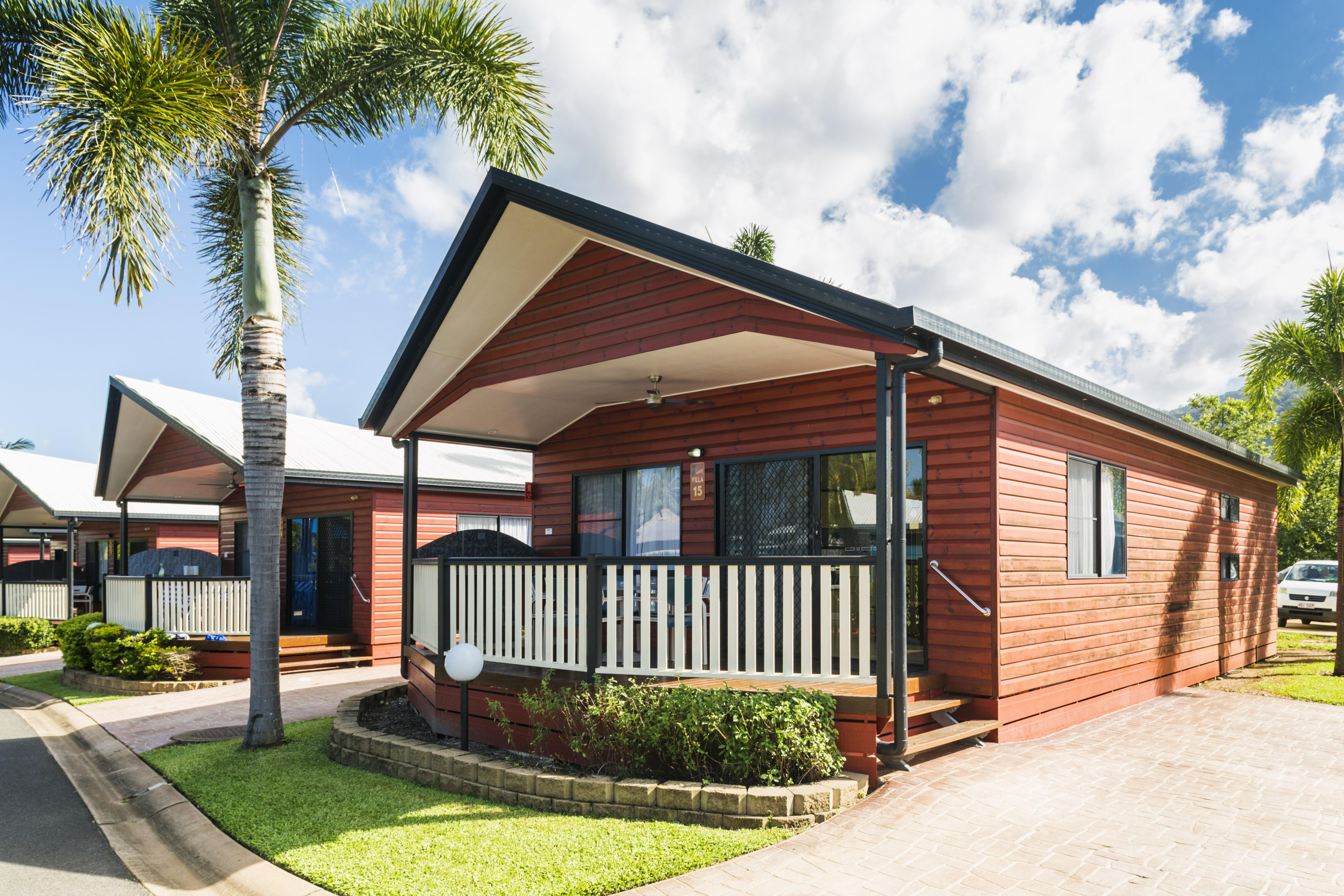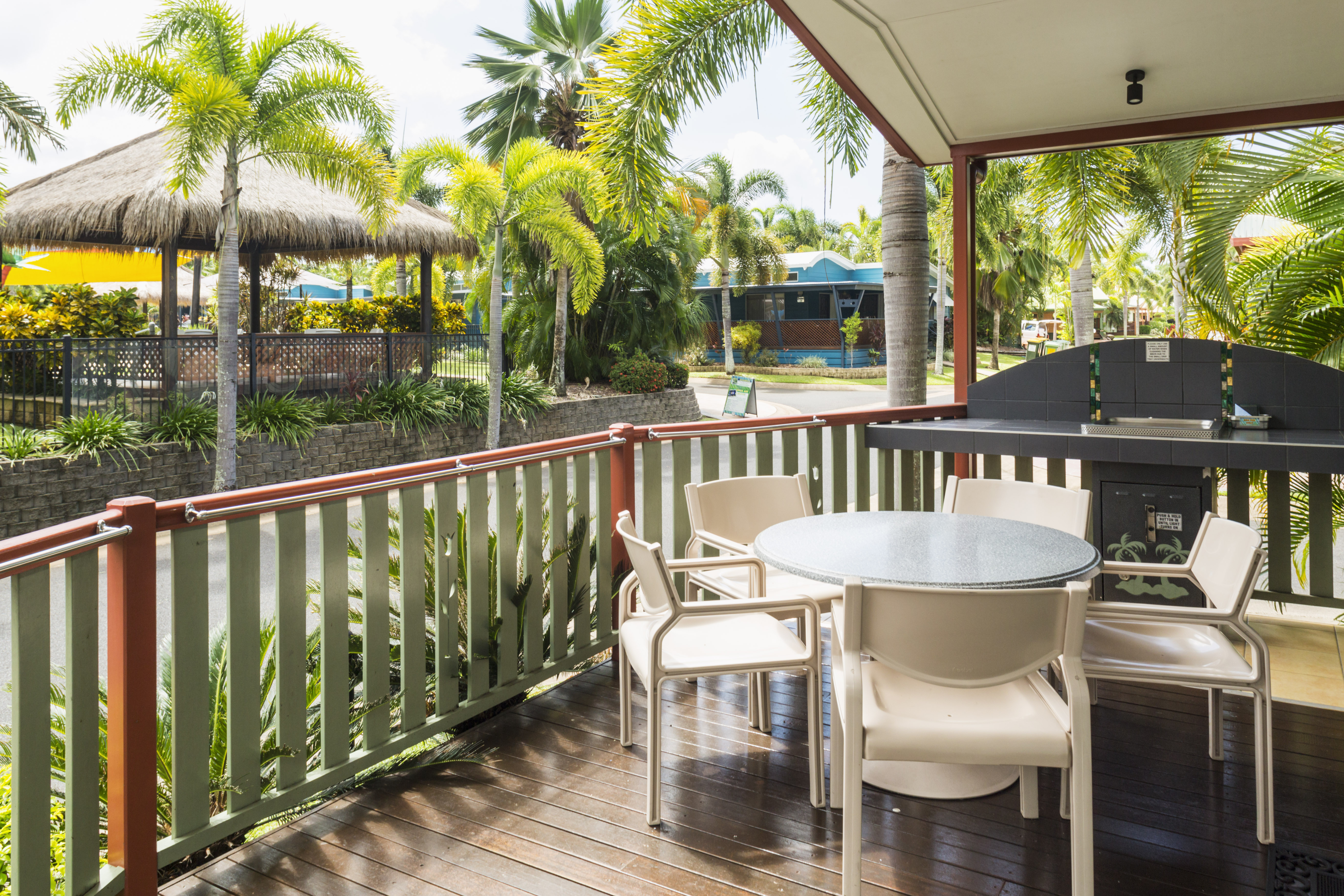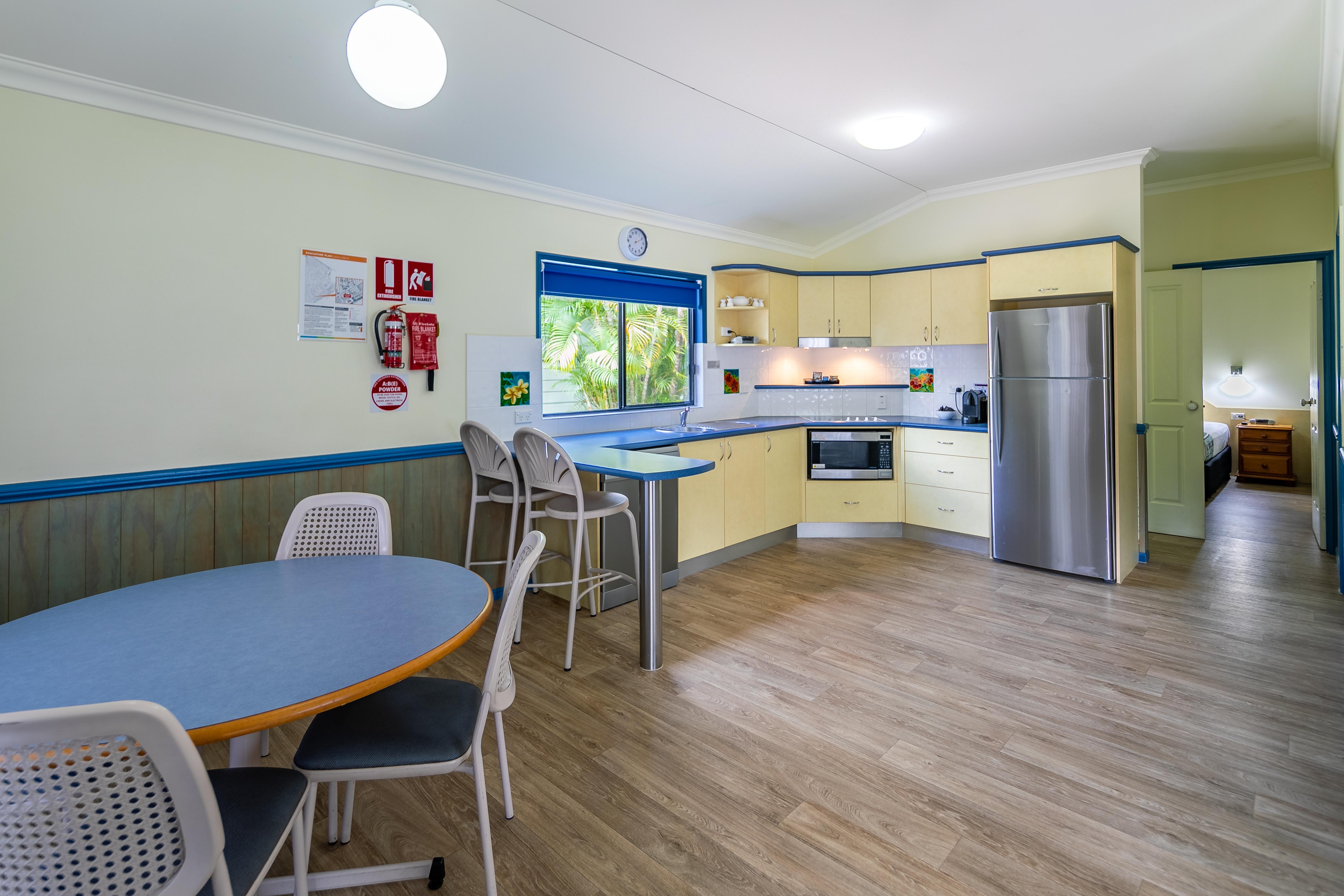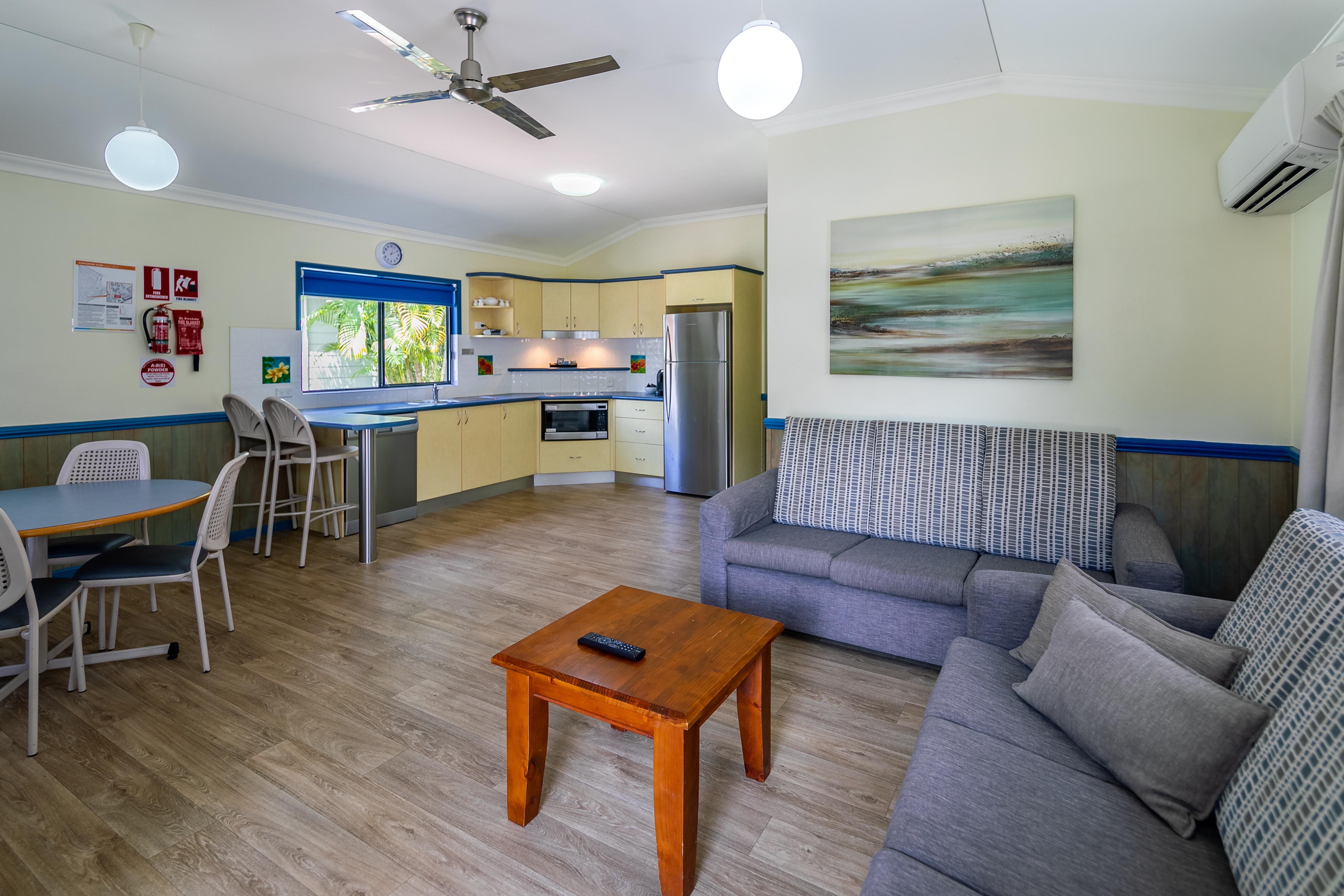 Our 2 Bedroom Luxury Villas sleep up to eight guests and include a king bed and TV in the main bedroom, two bunks in the second bedroom and one bathroom. Enjoy a private deck, a fully equipped kitchen, internal laundry, and a fold-out sofa in the living space.