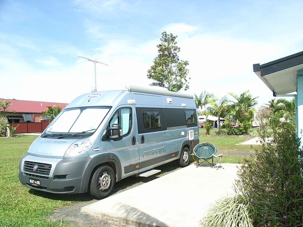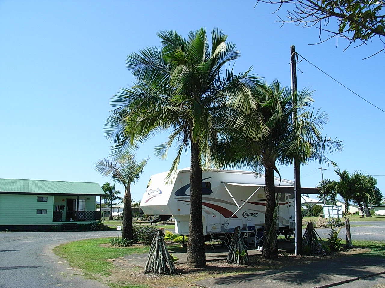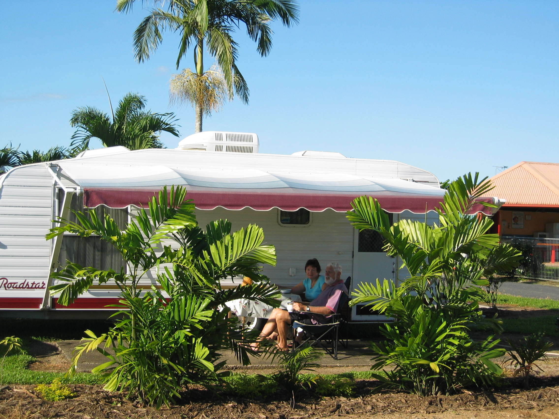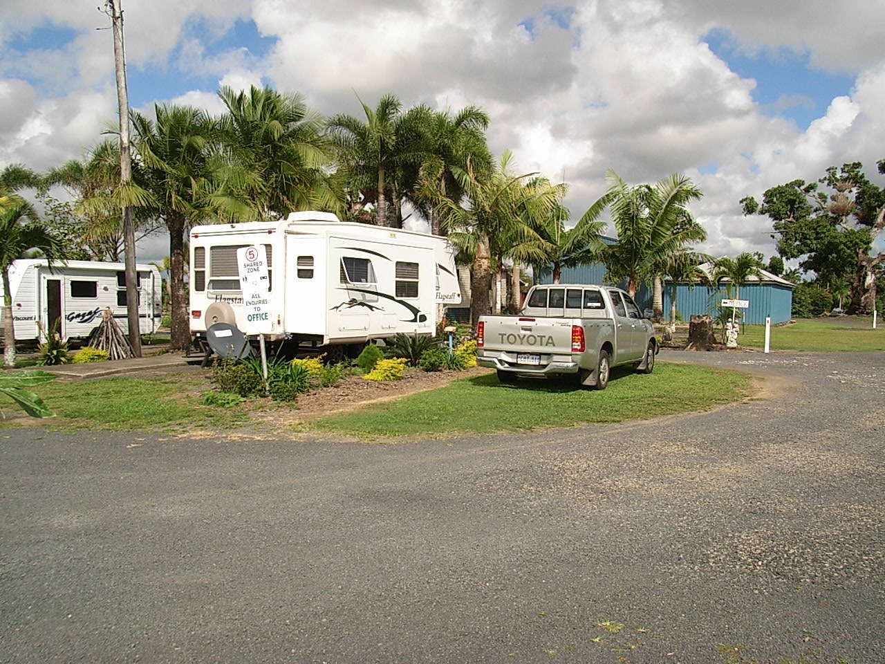 The Drive Thru Sites are very popular for the traveller that prefers easy access. A medium sized slab site suitable for equipment 4.9 to 8.2 metres (17 to 27 ft) in length. These sites are suitable for a caravan, large motorhome or 5th Wheeler and includes a concrete slab for an annex and space for car parking.