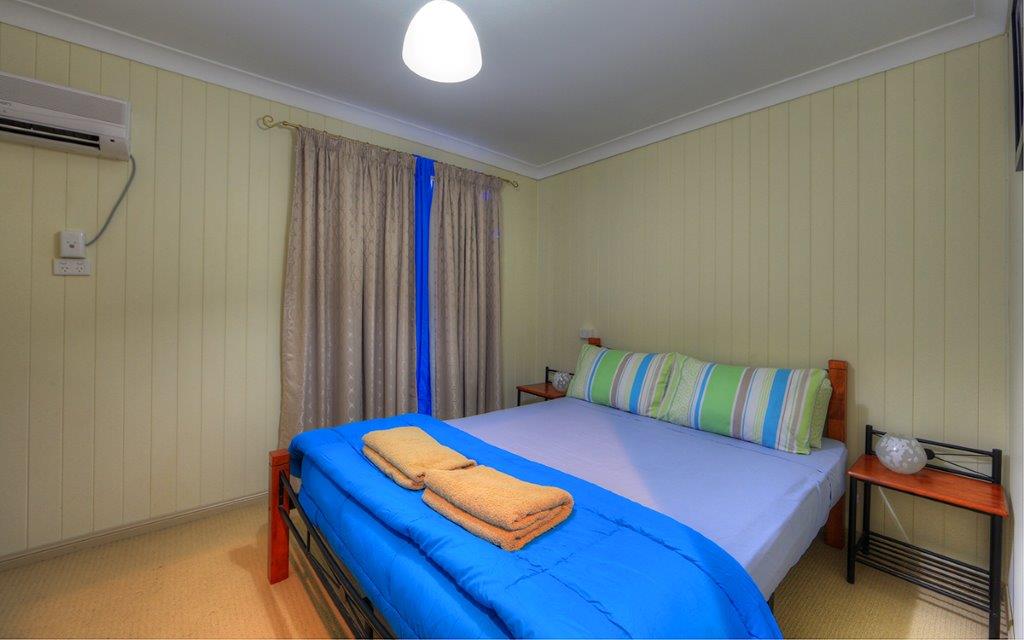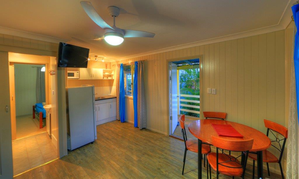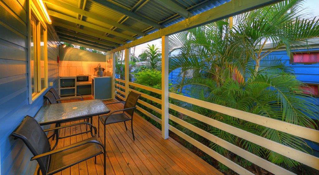 Featuring an open, air-conditioned room with a kitchenette with fridge, microwave & stove, table & chairs, couch and single bunk beds with a TV. A walk-through bathroom leads you into a huge separate main bedroom with king bed. with a lovely little verandah and a outdoor seating to relax on.
