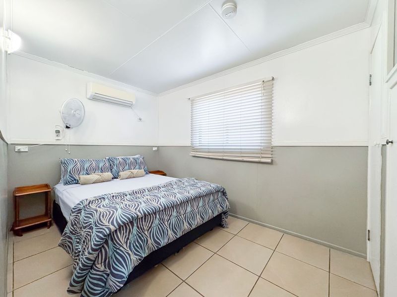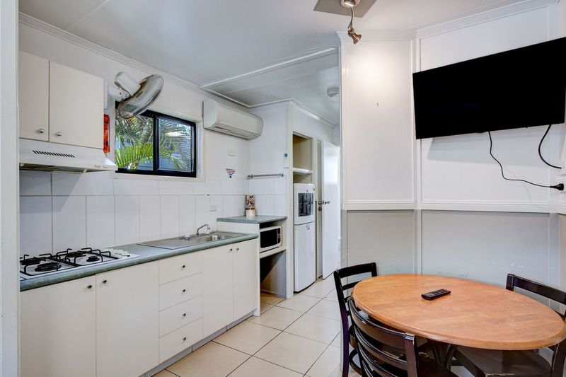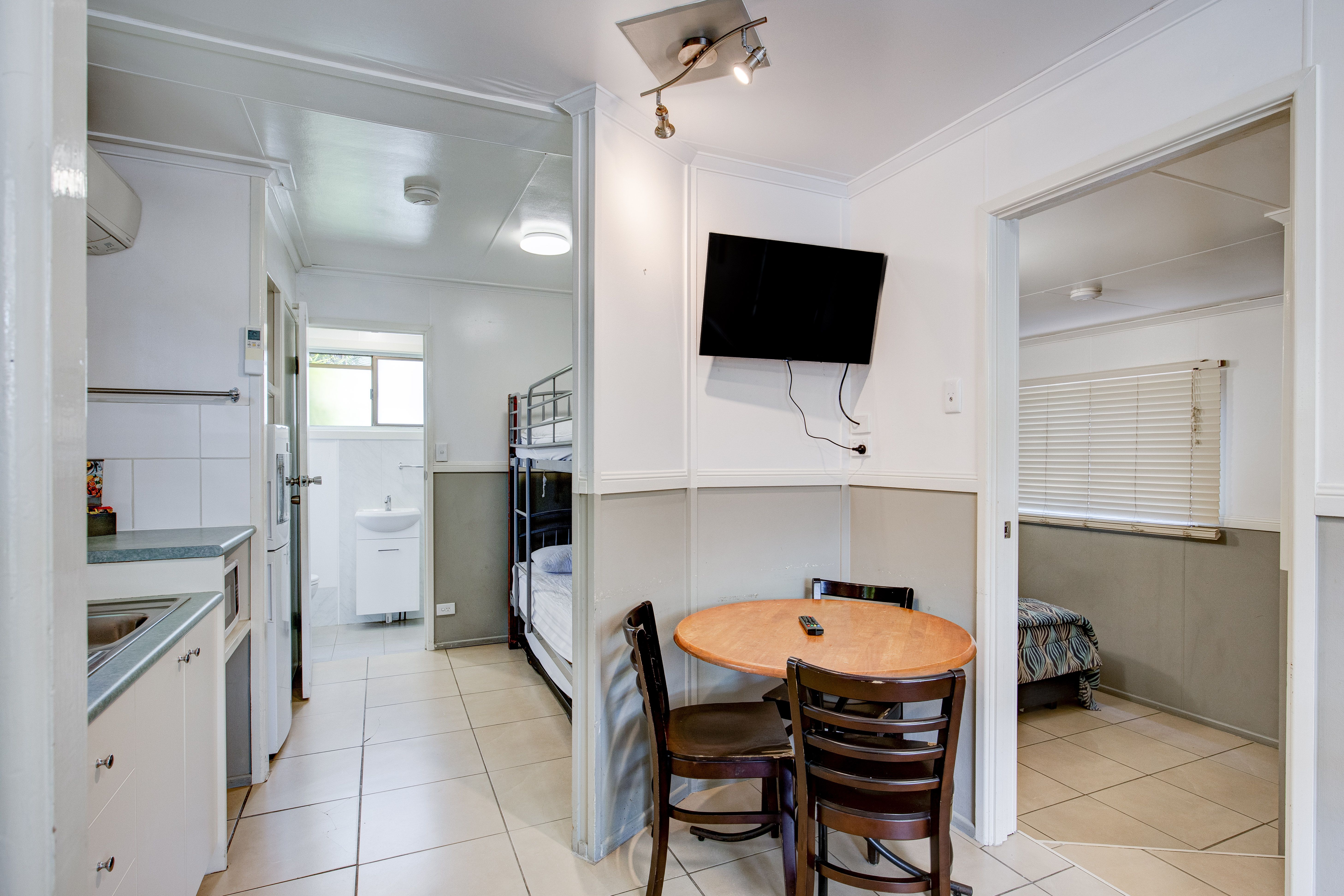 Featuring a separate main bedroom with a Queen bed and bunks beds with trundle in main living area. There is a kitchenette with full size fridge, microwave, cooktop, cooking utensils & crockery, split system air-conditioners and a small verandah with outdoor seating.