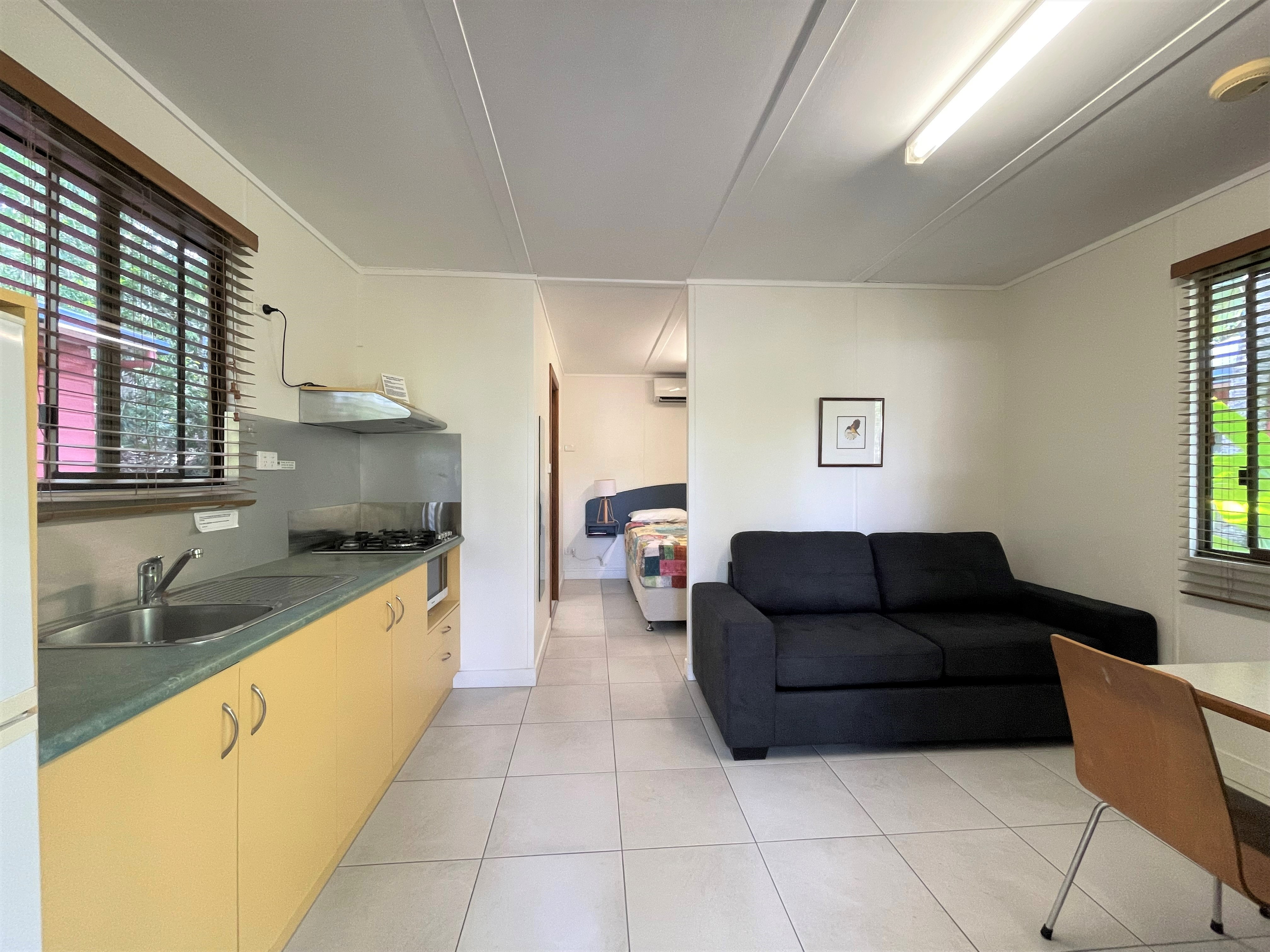 Bedding consists of a queen bed, with all linen and bath towels included. All Sunbird ensuite cabins include a newly renovated ensuite with shower, toilet and vanity. These rooms are great for a couple but also have a sofa bed in the couch in the lounge which is suitable for children or small adults (to be made by request only). Parking is in front of your cabin.