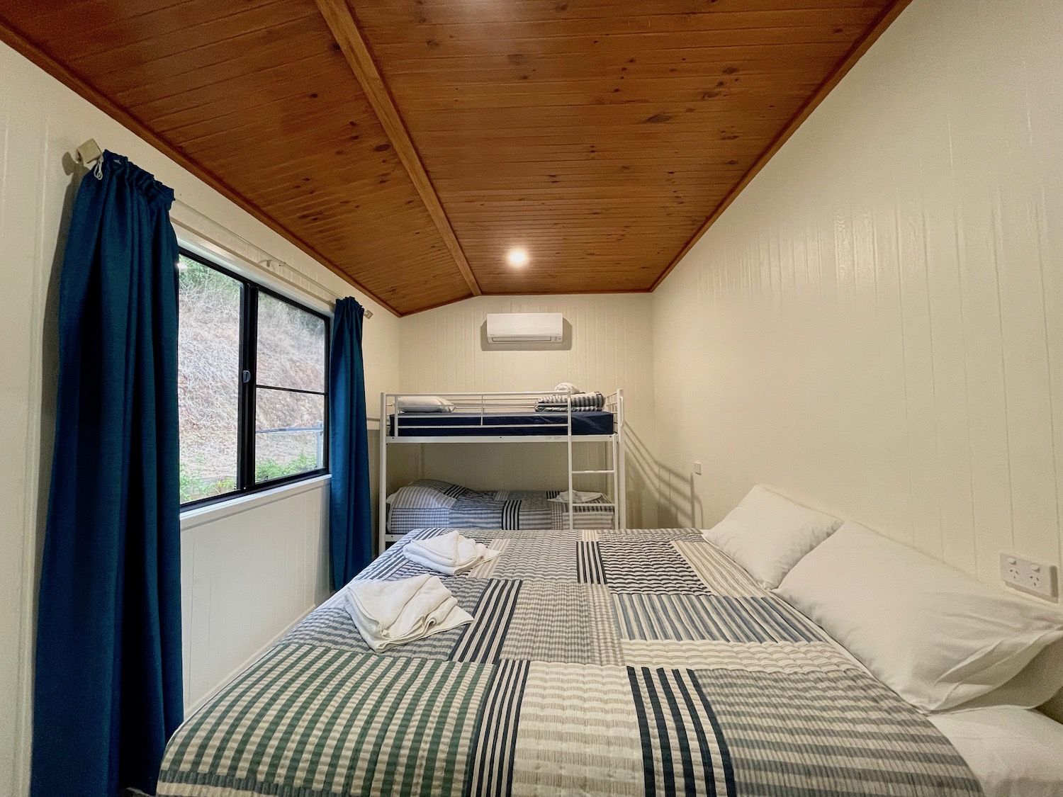 The master bedroom contains a queen bed. The second bedroom contains a king bed which can be split into two single beds, set of single bunks and also a single trundle bed, the lounge has two sofas, one is a sofa bed (made up by request).