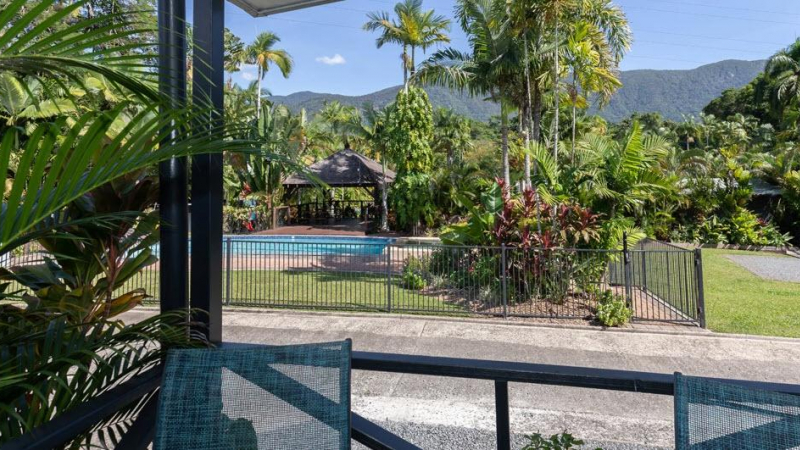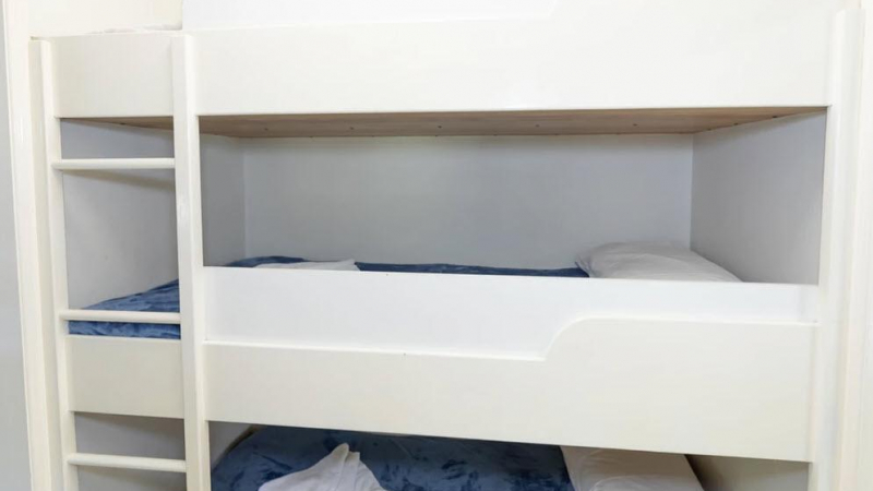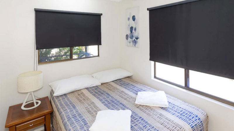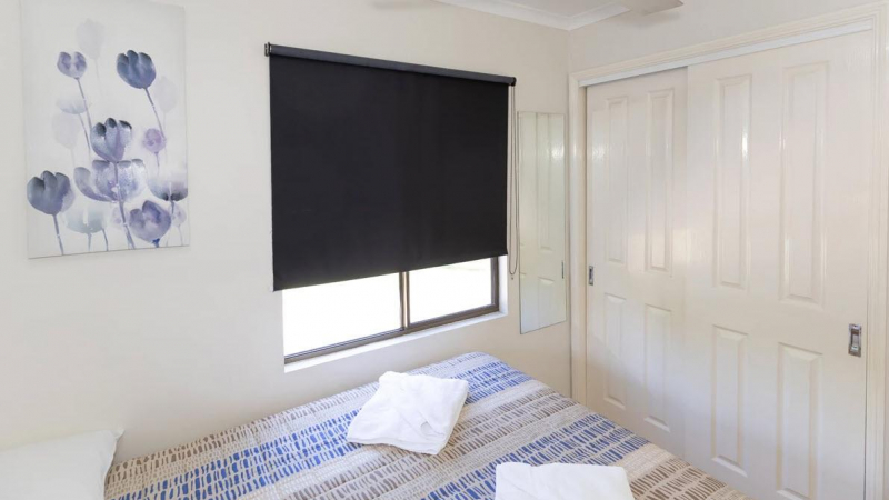 Can accommodate 2 adults and 2 children. This self contained cabin features a separate bedroom with a double bed and air conditioner available in the cabin, bunk bed built in to the passage wall opposite the ensuite. The bunks are suitable for children or small adults only as the top bunk is very small. Separate living/kitchen area. This area has dining, couch, television, fridge, microwave and cooktop. Perfect for a family to enjoy with the outdoor undercover deck looking onto the pool.