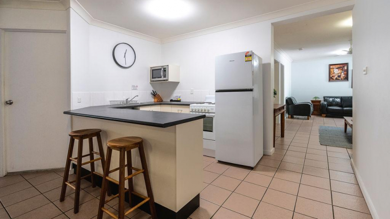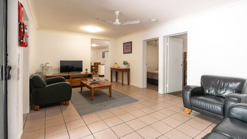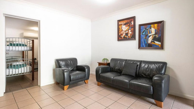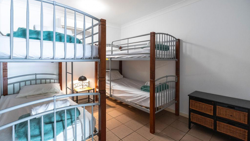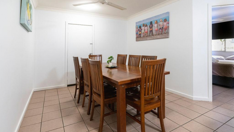 This accommodation caters for large families and groups and has two interlocking doors that lead to Turtle Cottage. Sleeps up to ten people, main bedroom has a queen size bed with ensuite bathroom, second bedroom has a queen size bed, third bedroom has a double bed, fourth bedroom has two full size single bunk beds. Well equipped kitchen dishwasher, full size fridge, oven, microwave, cook top. Large lounge room, separate dining area, air conditioning available in the cabin and ceiling fans. BBQ provided in partially covered large outdoor area. Two interlocking doors leading to Turtle Cottage.