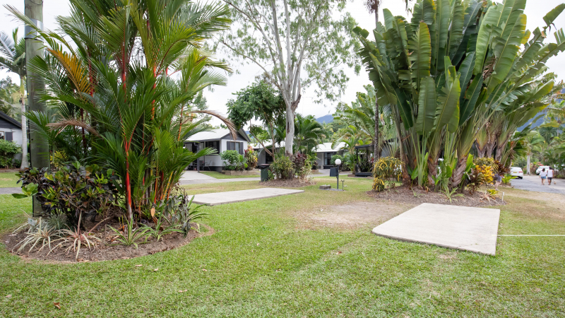 Our spacious sites are grassed with concrete slabs, many offering shade. Camp amongst the tranquil grounds surrounded by beautiful gardens and wildlife. Our slab sites are perfect for camper trailers, caravans and motorhomes.