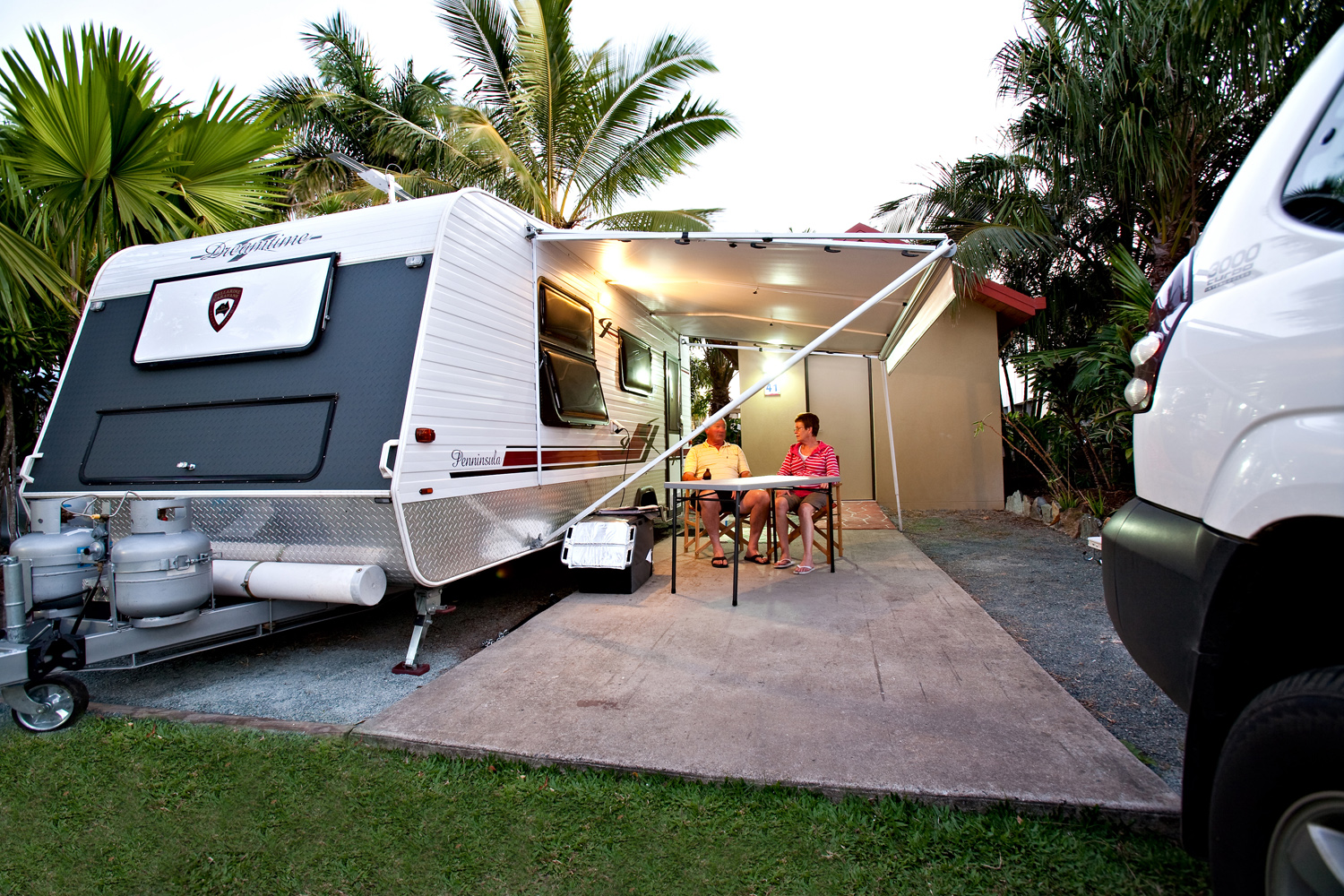 Even if we say so ourselves, our Ensuite Sites are likely to be the best you’ll come across! Extra spacious and fully tiled in fresh, modern colours and featuring a huge shower, toilet, vanity and storage. Like all of our sites, our ensuite sites are individually landscaped to provide a beautiful tropical setting. Please note, minimum stay applies depending upon the season.
