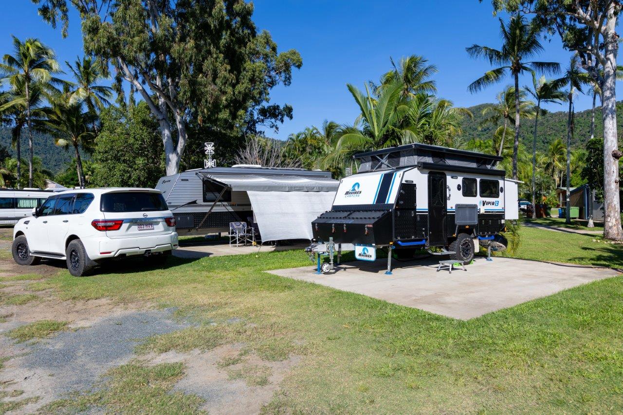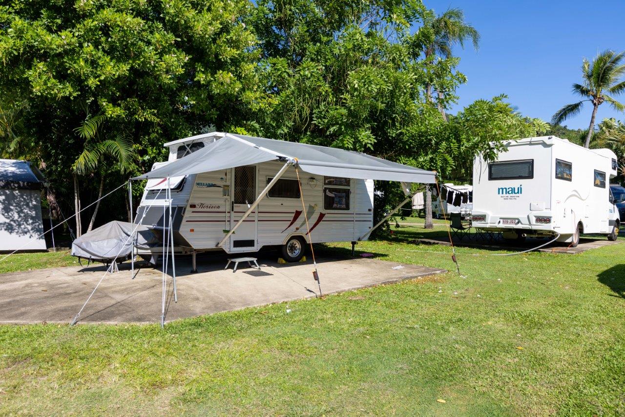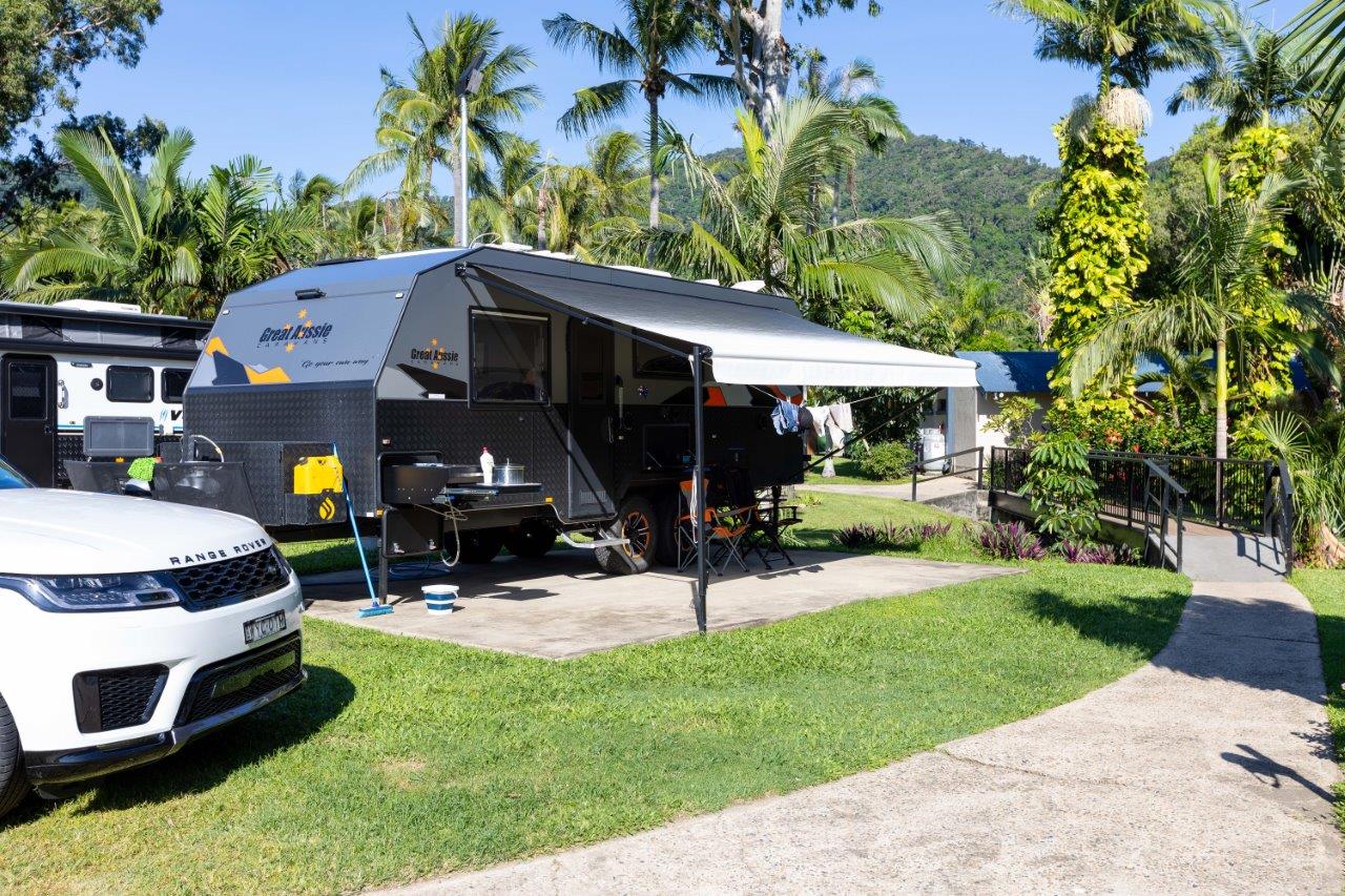 These well-equipped sites are ideal for convenient parking, providing a leveled surface for outdoor furniture such as tables and chairs. Nestled in beautifully landscaped surroundings, our sites offer access to various amenities, including shared BBQ areas, camp kitchens, bathrooms, toilets, laundries, a swimming pool, a half-sized tennis court, unlimited free Wi-Fi, and much more!