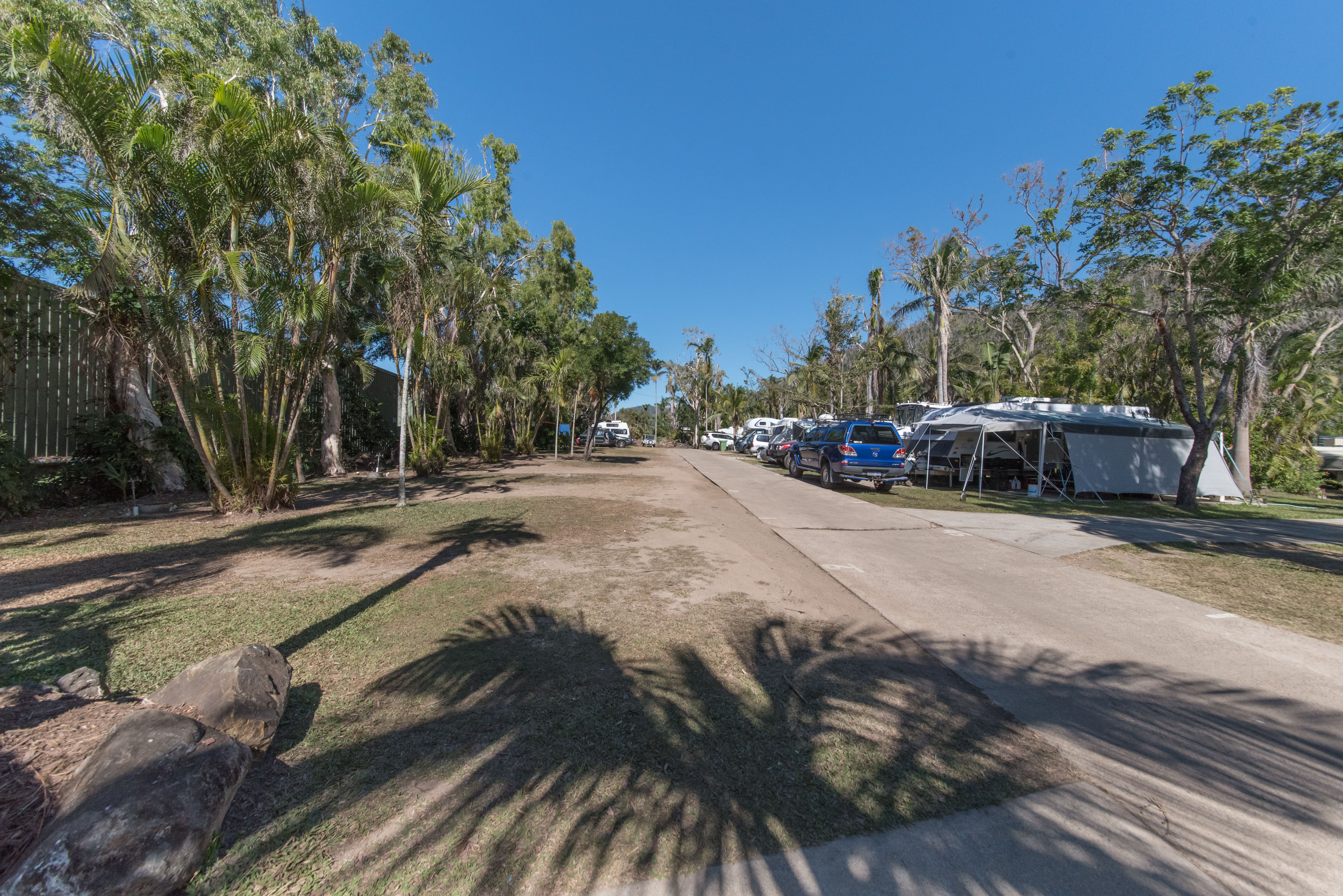 These grassy, shaded campsites are perfect for tents and small campervans, set close to the camp kitchen and surrounded by tropical gardens.