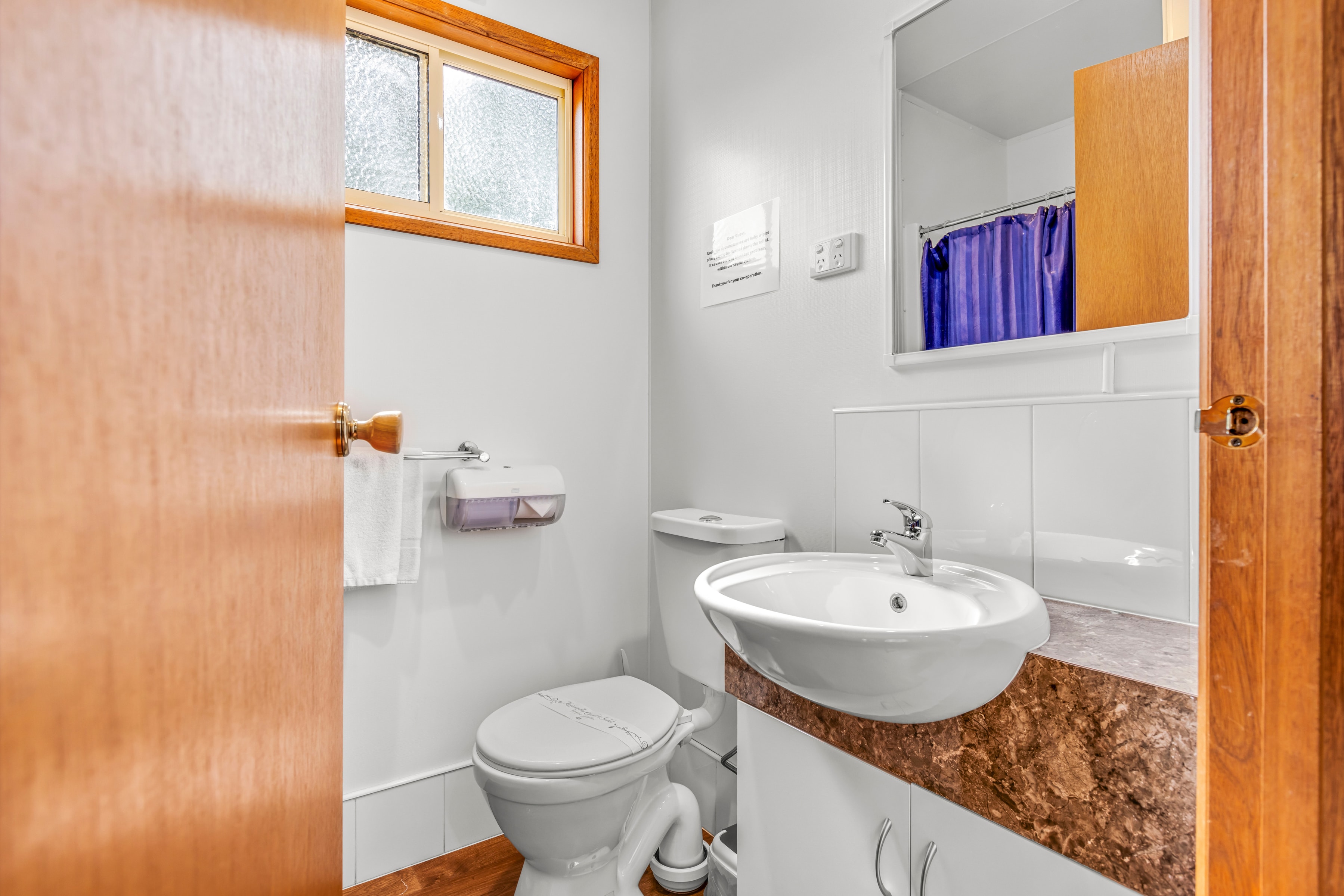 The bathroom has a shower, toilet, vanity and hairdryer. Iron & ironing board are located in the bedroom wardrobe.