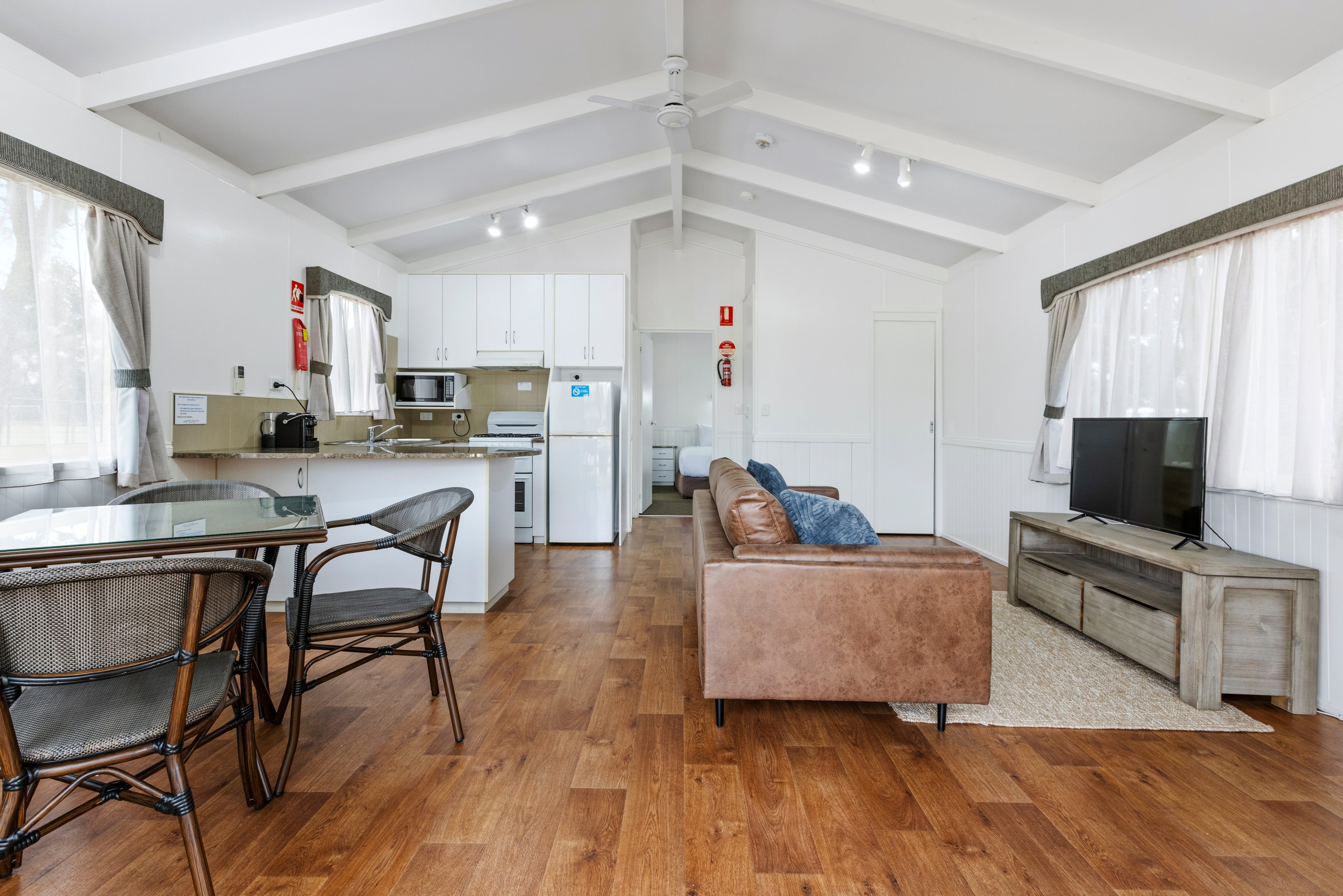2 small dogs or 1 medium dog maximum allowed in our pet friendly cabins. Pets are allowed inside our pet allocated cabins; however they are not permitted on any furniture. Pets must have their own bed to sleep in. Cats and birds must be caged. Pet charges are $10ppet p/n.