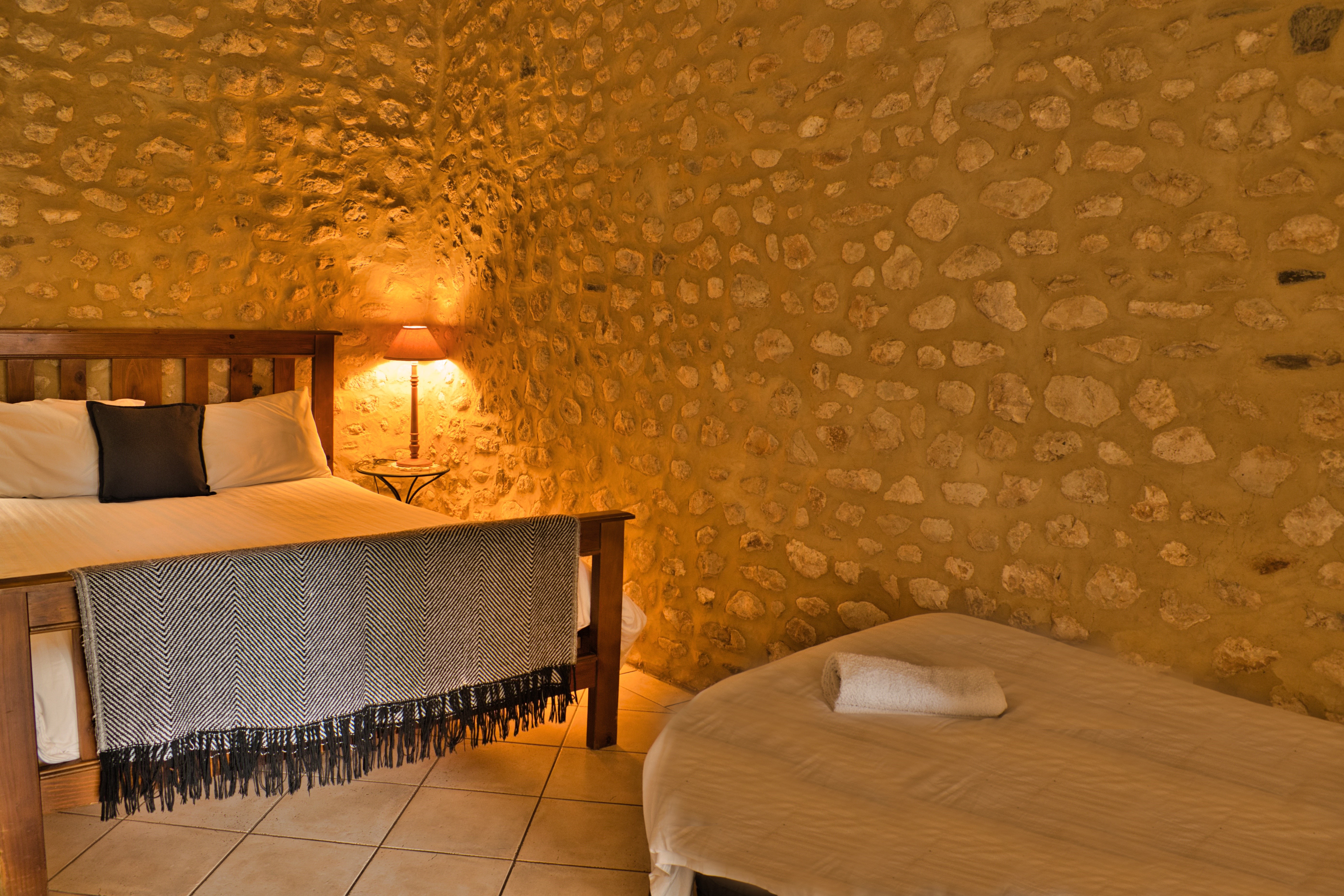 Cobblestone Keep is one of our largest accommodation options and is disabled/wheelchair friendly. Made from the original stone found on the property, it has two spacious bedrooms both with ensuite bathrooms & RC/AC.
