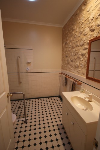 There is a ramp access to Cobblestone Keep and bedroom one has a bathroom which is a wet room shower. It is equipped with handrails and wheelchair access to the shower.