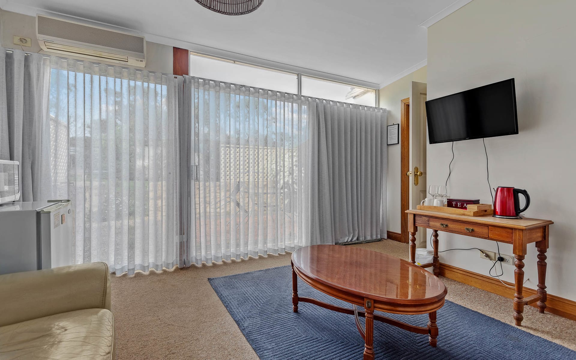 Adjoining the reception building, the beautiful Huon Room is a motel suite style accommodation, named after the timber used in the floor, nestles below its character verandah and overlooks a garden area that it shares with the Oregon room.