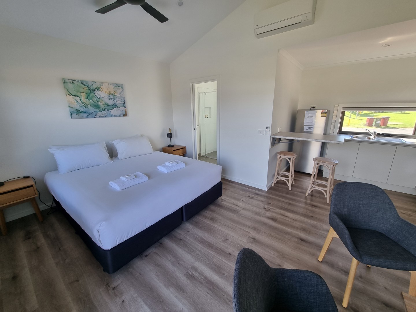 Overlooking the Bungala River, the Beachcomber is an open plan suite with a king bed. The kitchenette includes a gas stove top & microwave. Separate ensuite with shower. Outside deck and seating area for 2 with views of the Bungala River.