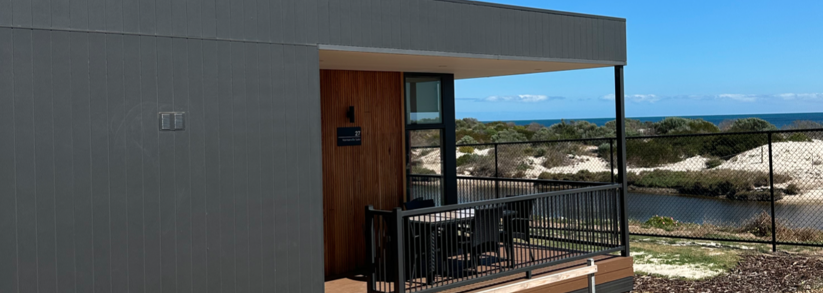 With ocean views, The Normanville Cabins have 1 x queen and 1 x quad bunk beds. One bunk can be hinged up to make room for a port-a-cot. Sleeps up to 6 people. Open plan kitchen, dining & lounge with television. Outdoor decking with dining area. Ensuite with shower & separate toilet. Kitchen includes dishwasher, gas stove top & microwave. Sleeps up to 6 people.