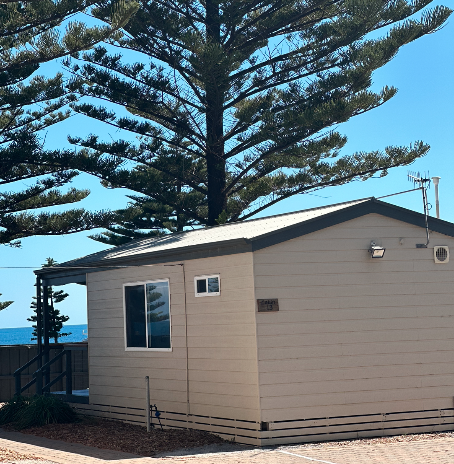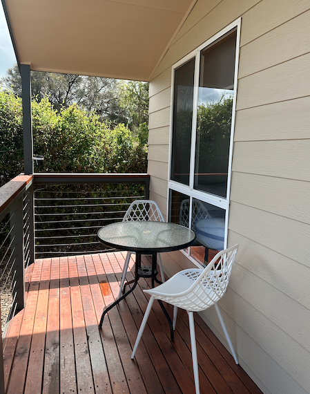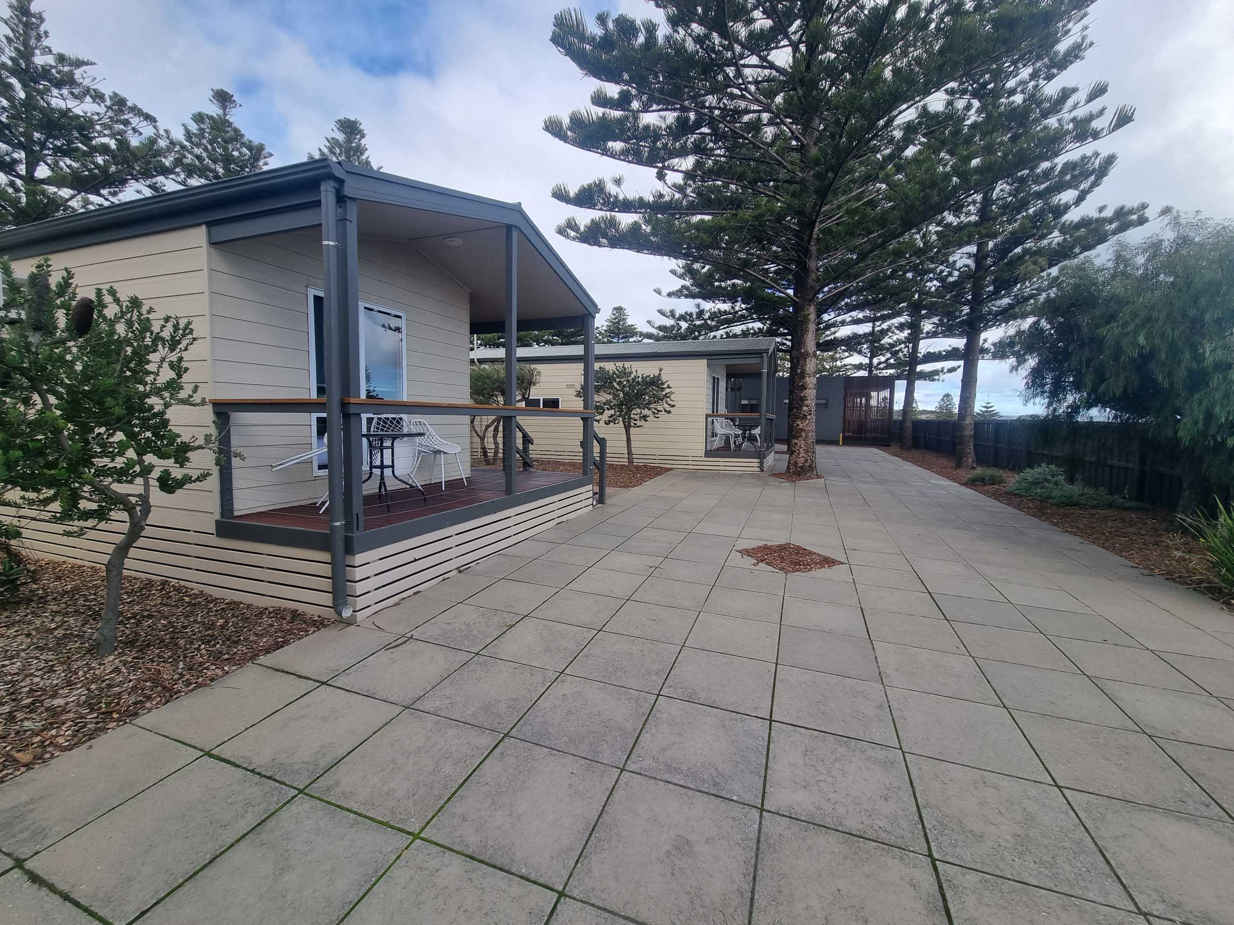 Under the shade of our trees, these two bedroom ensuite cabins offer privacy and comfort. From the balcony of the cabin you can relax and enjoy the views of the park or ocean, watch our local wildlife and hear the sound of the waves.