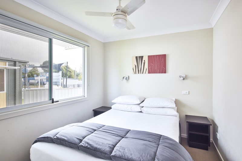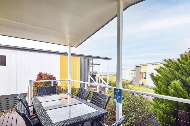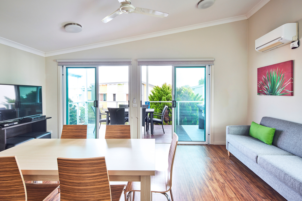 Set back from the water, close to park facilities including pool. Two bedrooms. One queen and two singles. Features air-conditioning; kitchen including dishwasher, fridge, convection microwave and stovetop; full bathroom; private veranda with dining; dining setting and lounge with TV and DVD.