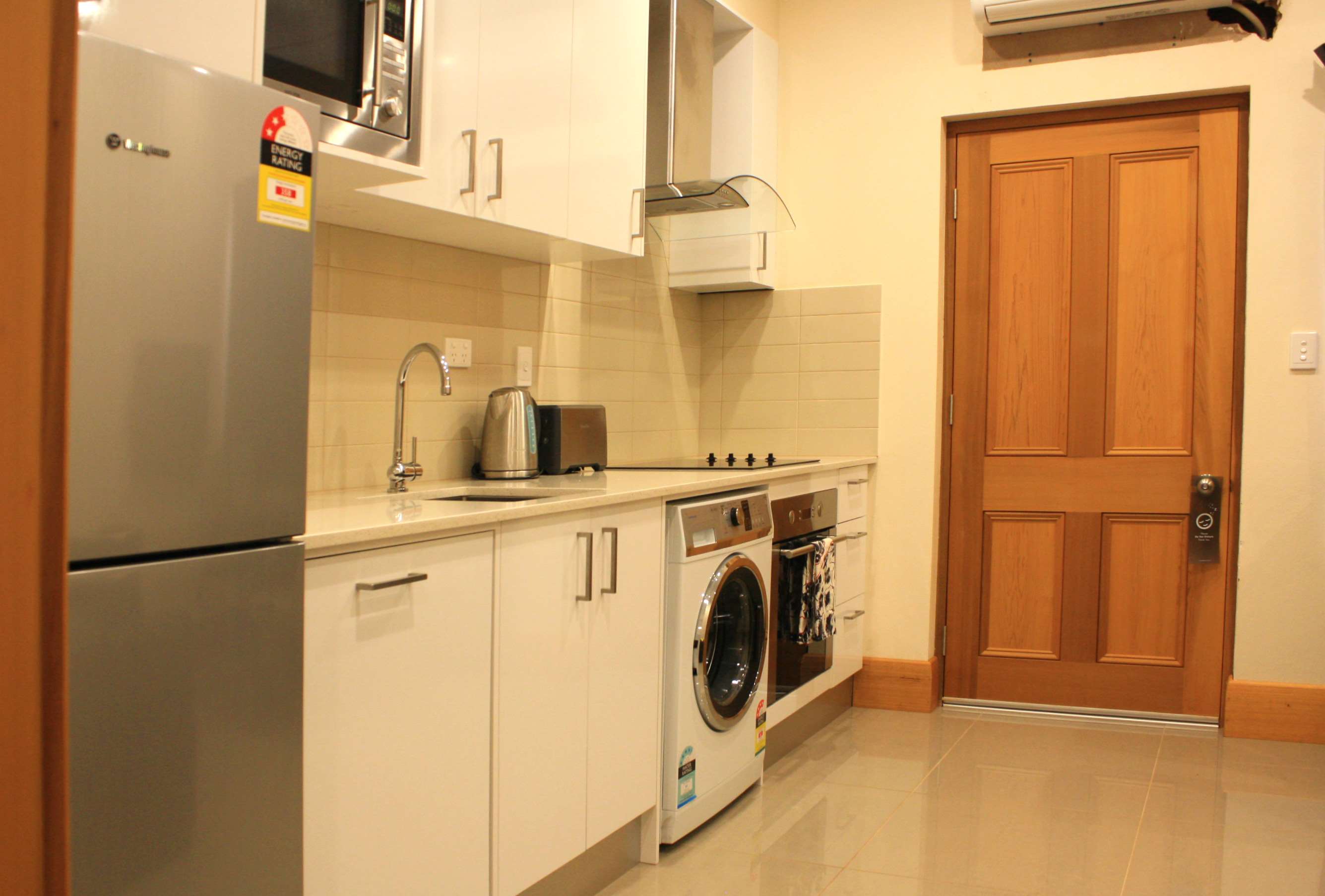 Our Standard Apartments - Queen are fitted with quality finishings and all the modern appliances you could need. These are spacious and comfortable with a queen bed and double sofa bed option in the living area. Features include split system air-conditioning in the living area, ensuite off the main room, fridge, dishwasher, oven & washing machine.