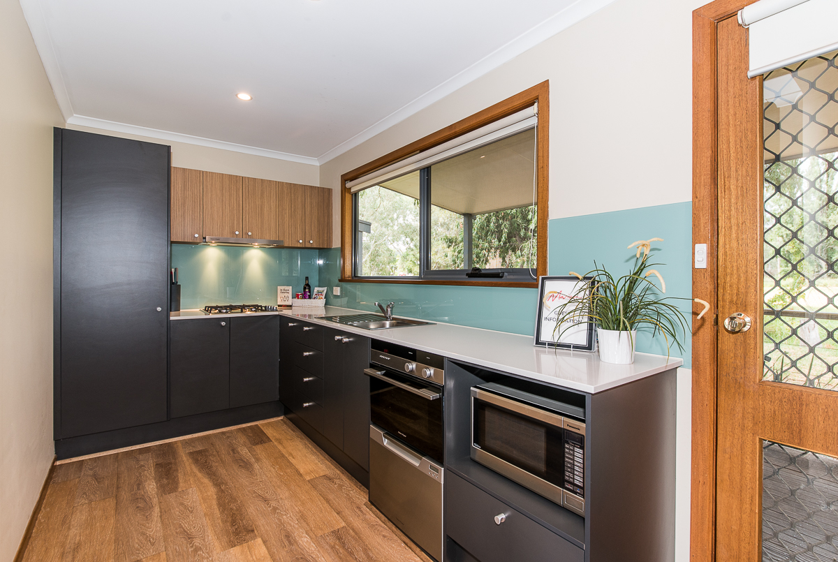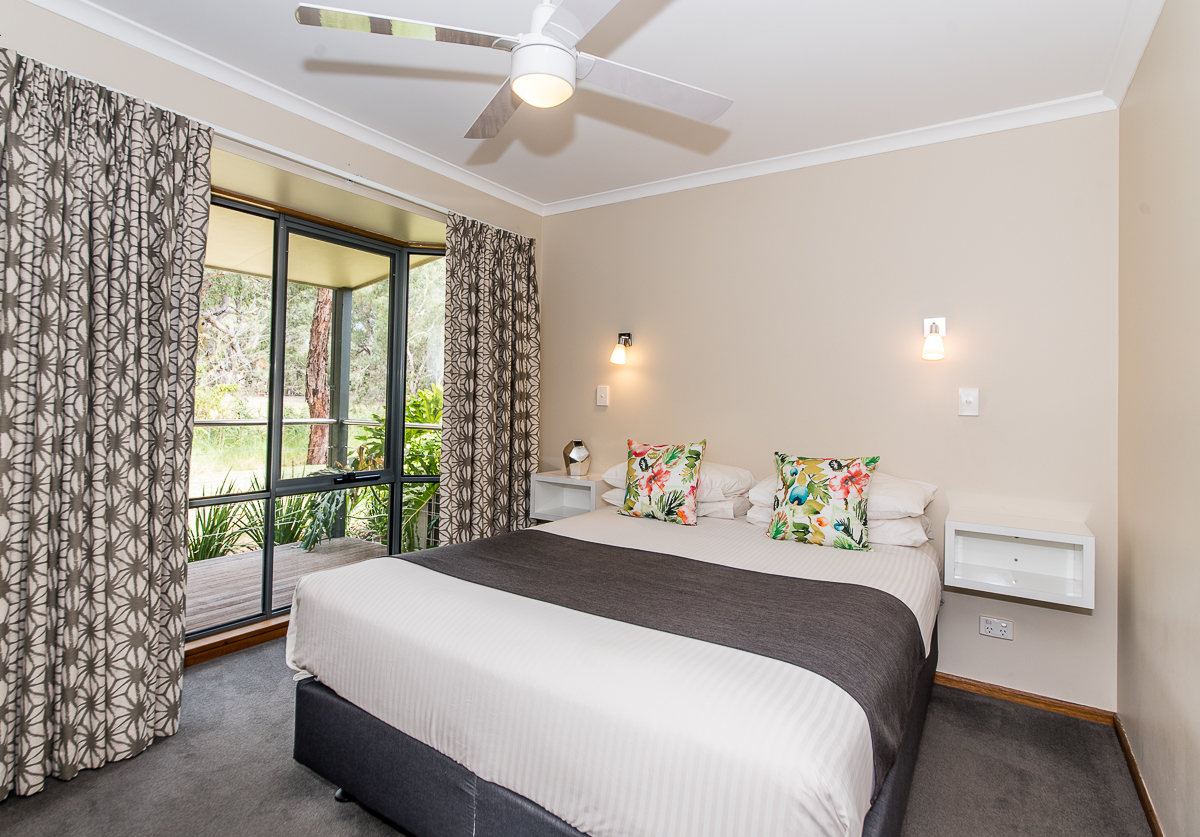 Our unique Creekside Villas sleep 4-5 people and include: • 2 bedrooms – 1 queen bed, bedding configuration varies in 2nd bedroom • Private Veranda with BBQ • Reverse Cycle Air Conditioner • Full kitchen with dishwasher • Flat Screen TV • DVD Player • CD Player • All bedding and towels supplied.