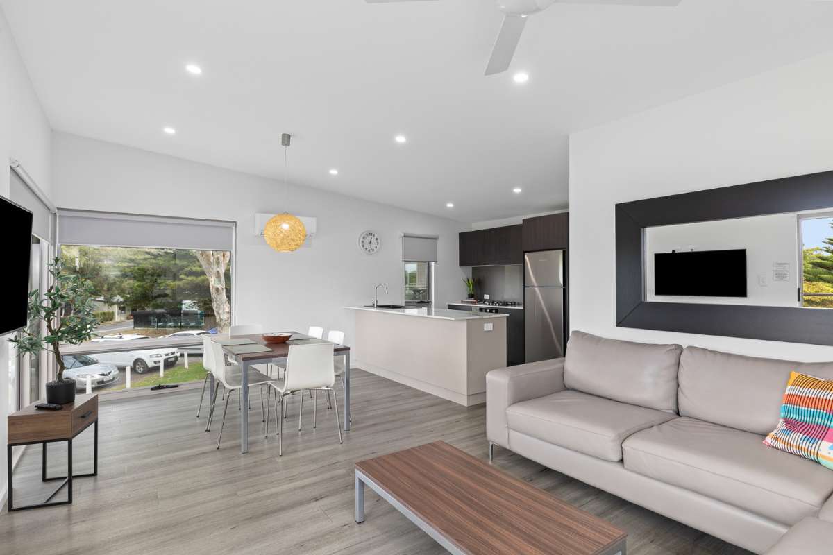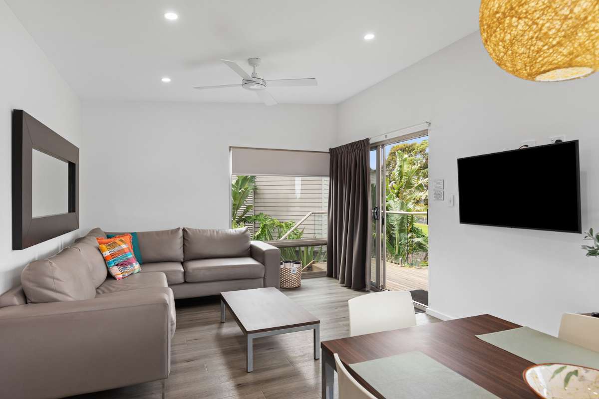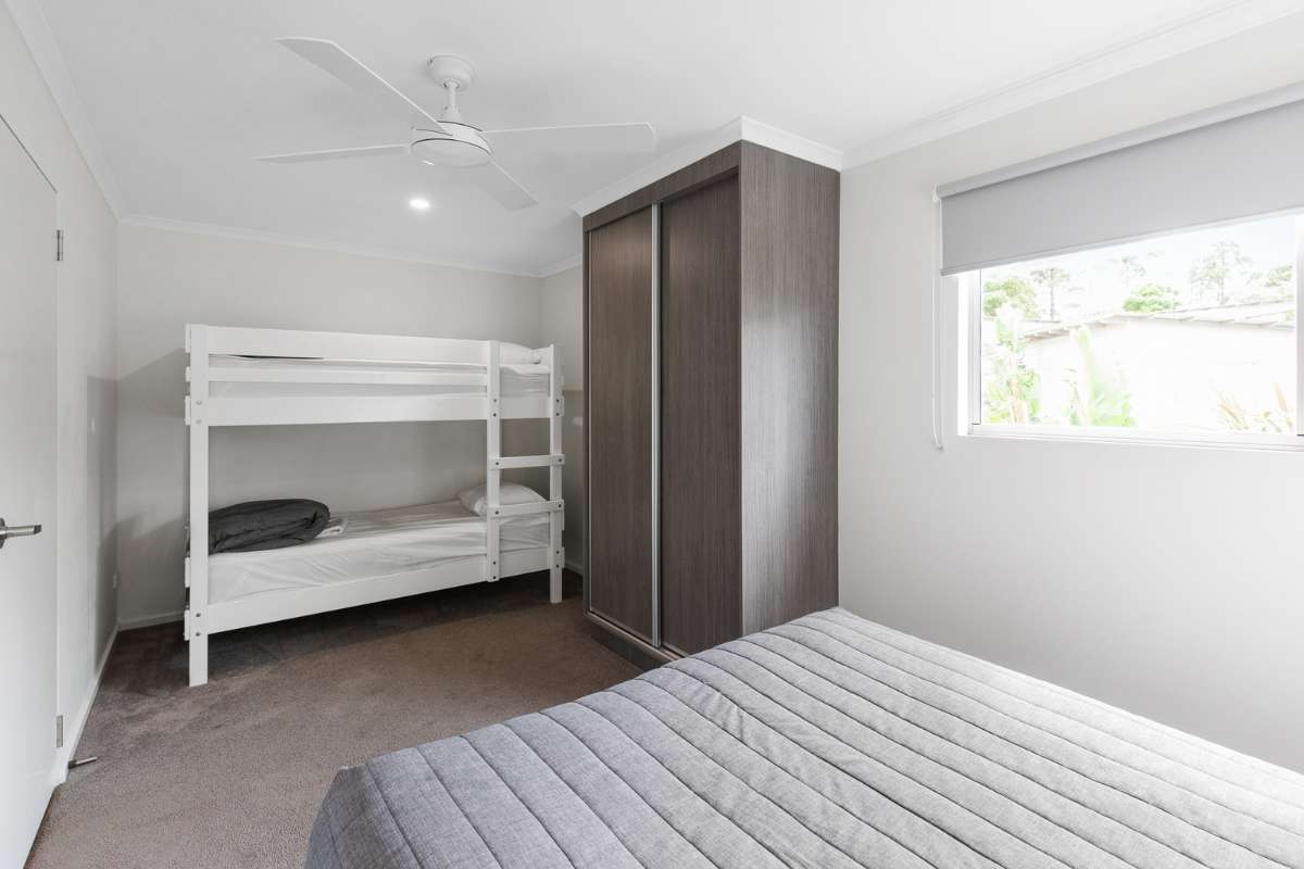 Featuring 2 bedrooms, the main bedroom includes a queen size bed with its own designer ensuite bathroom. The second bedroom includes a queen size bed and a set of single bunks making this perfect for a couple with children. This unit also features a second bathroom, designer kitchen and beautiful spacious living area.