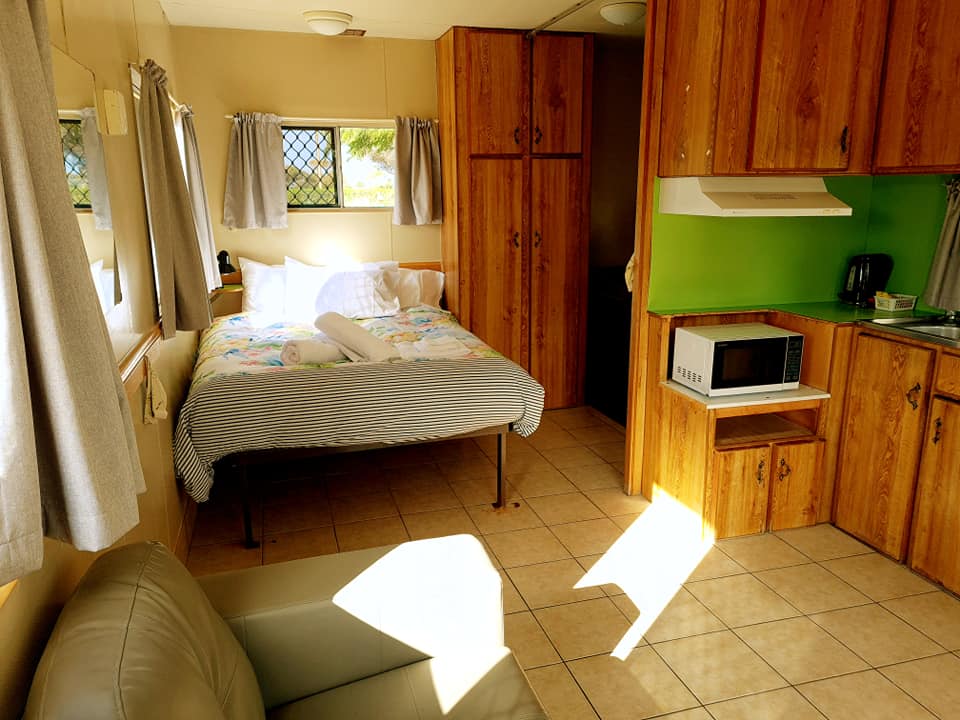 If you’re looking for a warm comfy bed, a place to cook breakfast, and a private spot to just sit back, relax and take in the sea air, our budget cabins are just the thing. Like the caravans we enjoyed as kids, the budget cabin has all the basics covered, with bathroom facilities just a short stroll away.