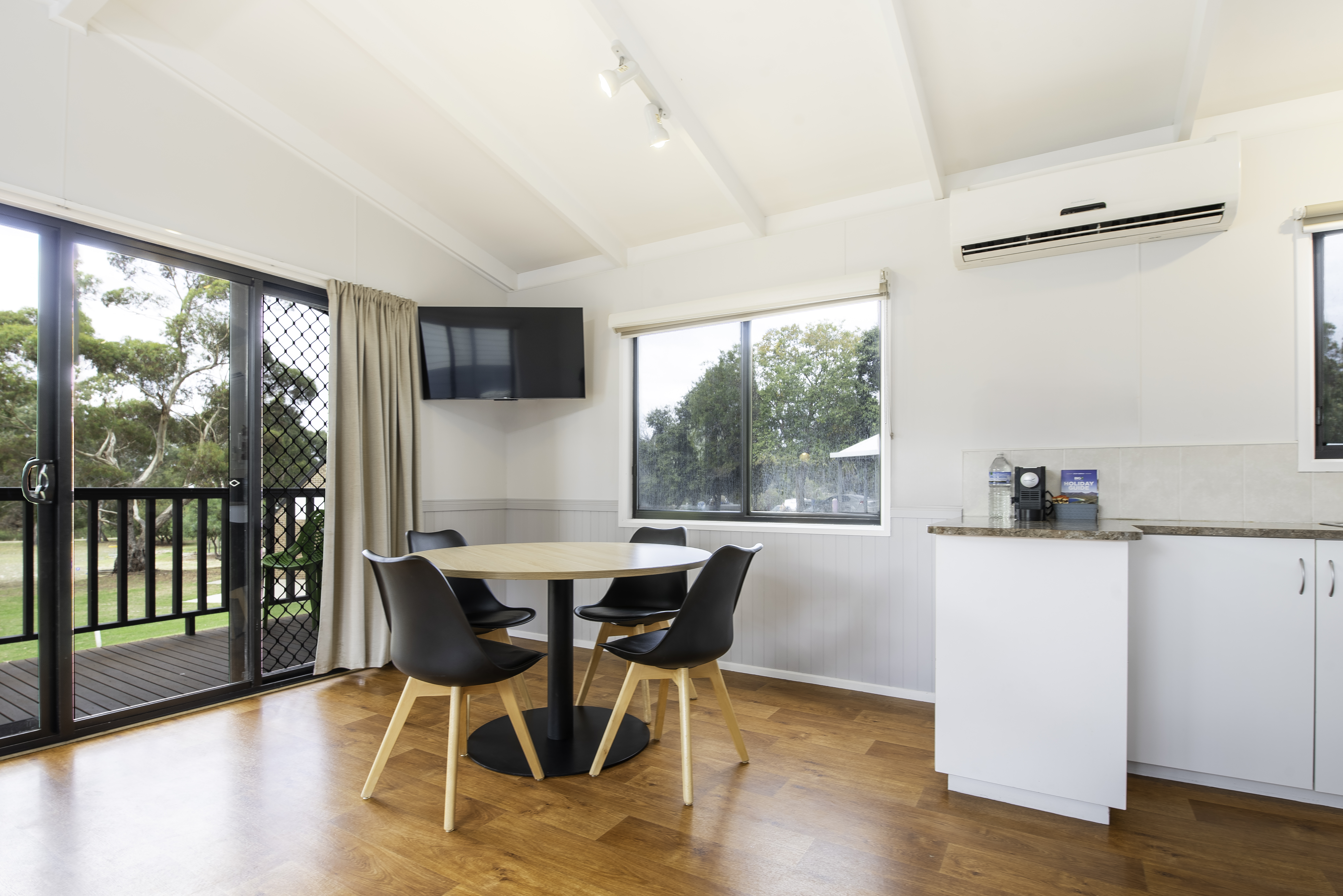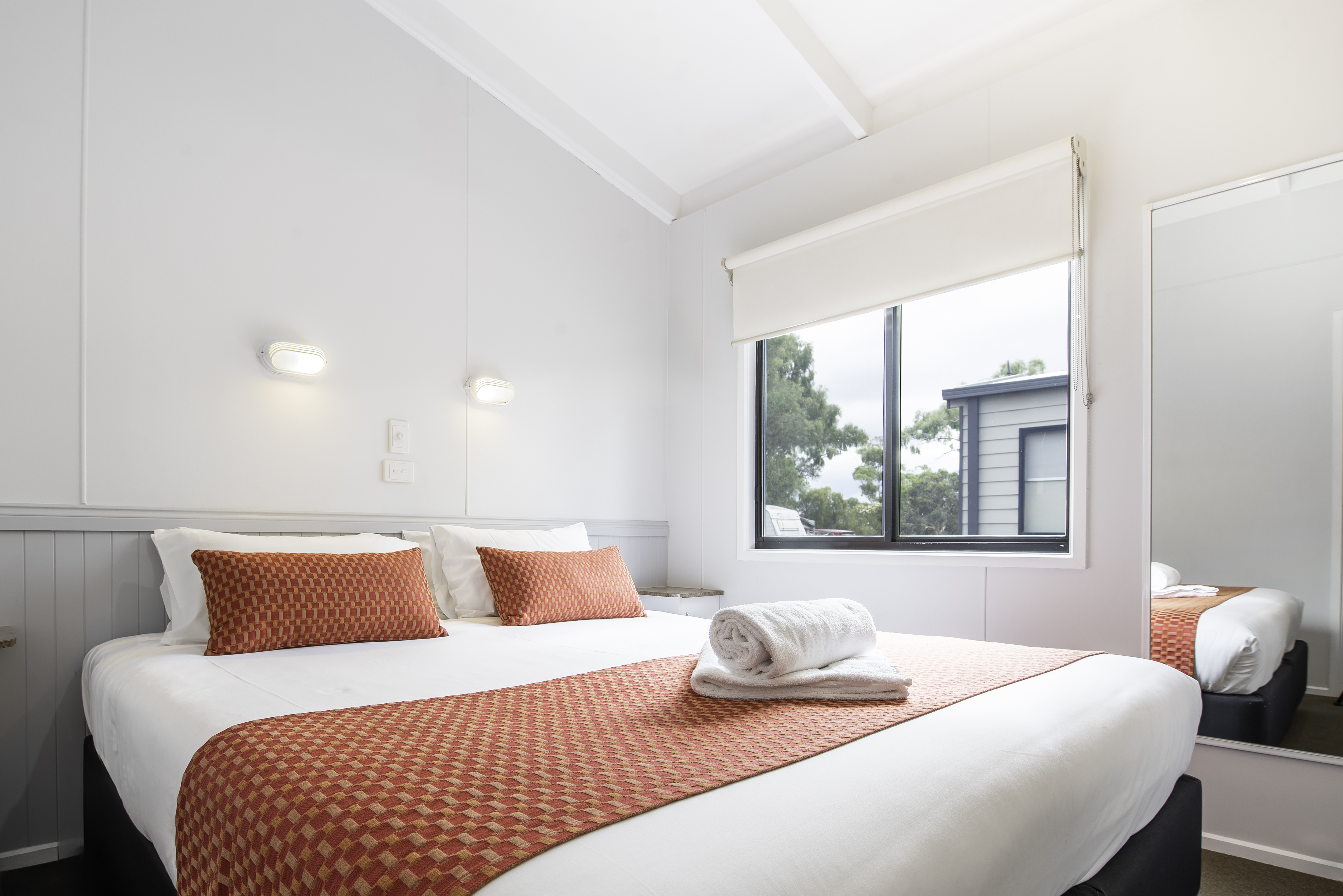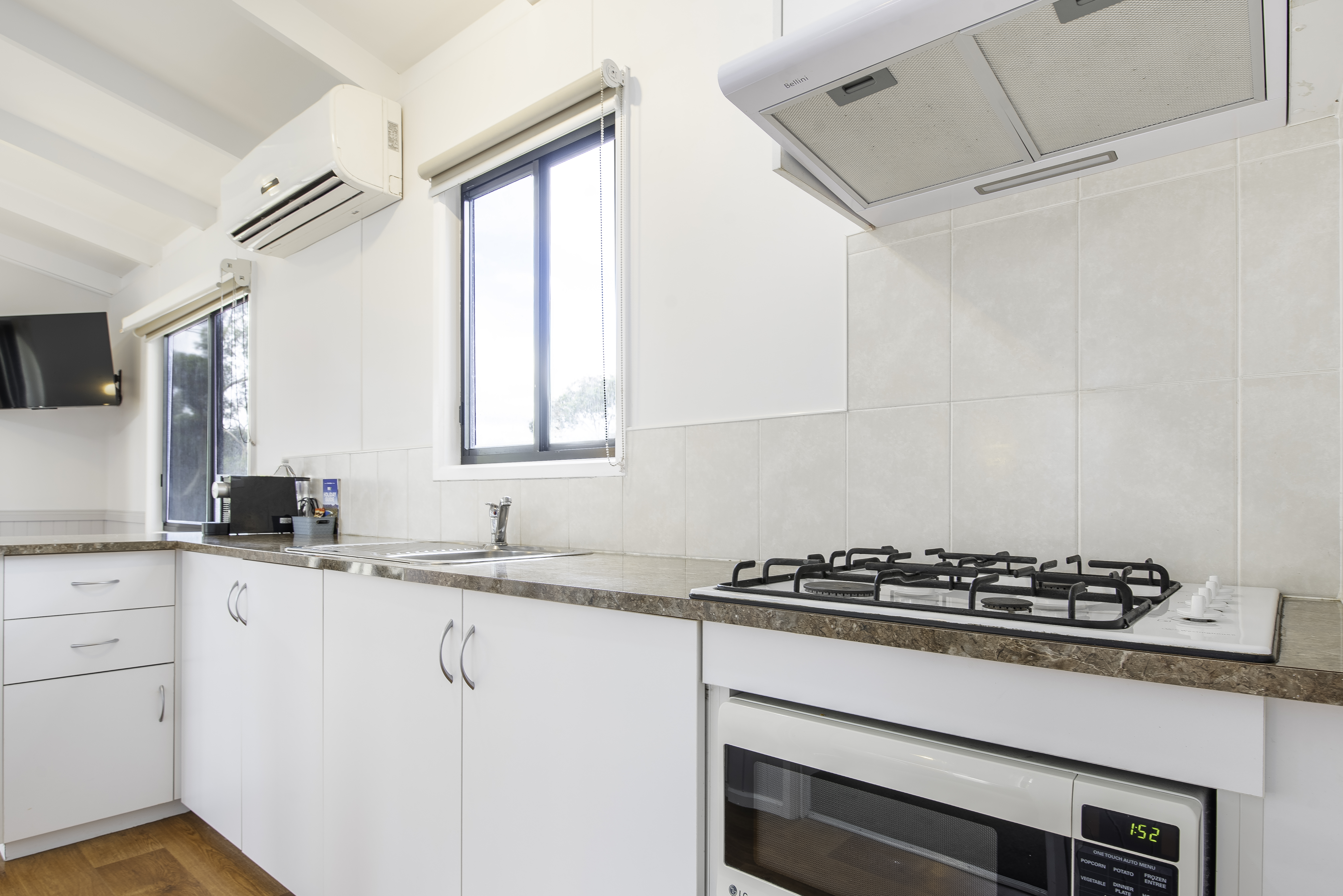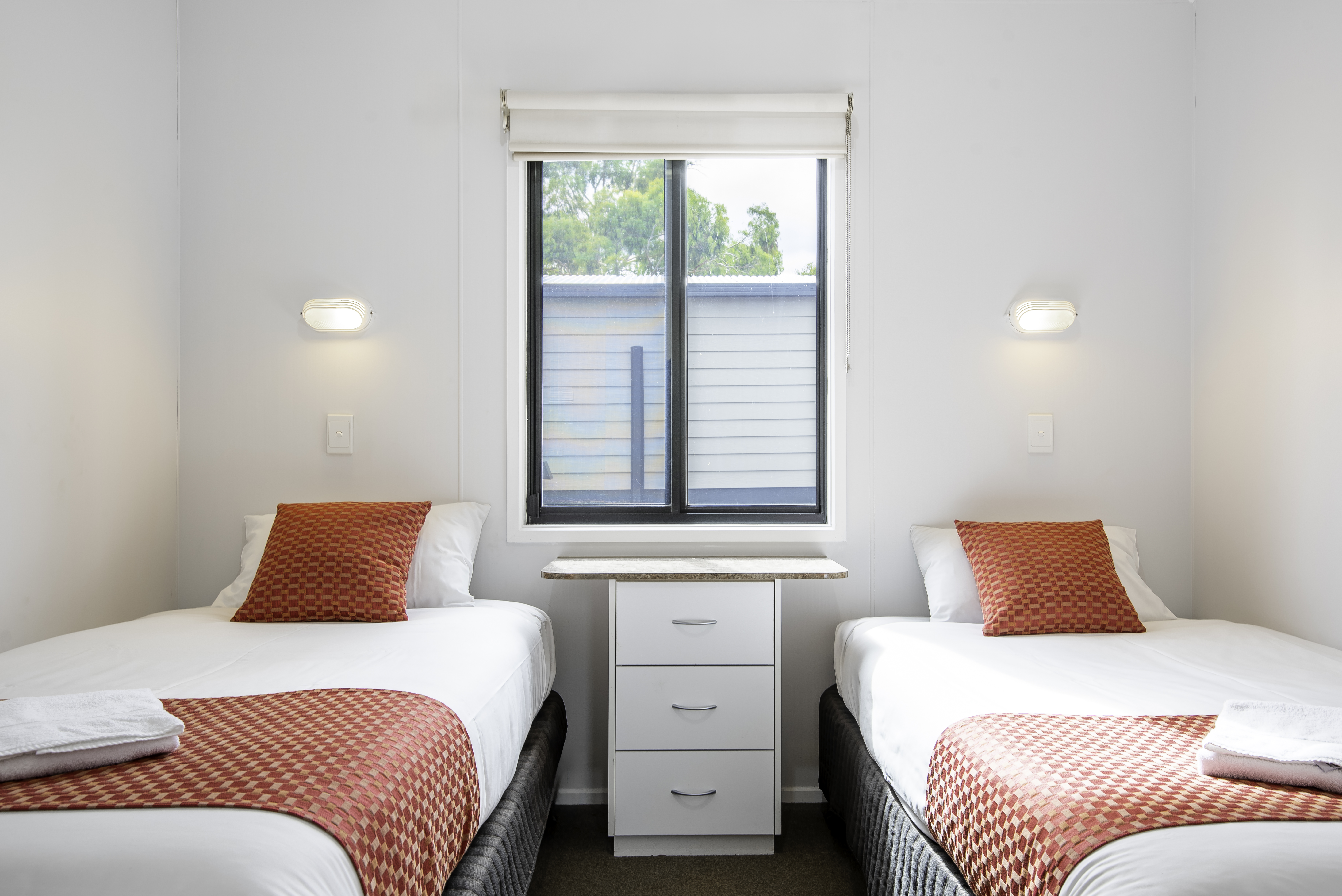 Centrally located within our Park, these self-contained cabins offer everything you need for a comfortable stay. Each cabin features 1 king bed and 2 single beds, linen provided. The bathroom contains free toiletries, toilet, shower and towels. The living area contains a dining table, TV and reverse cycle A/C. The kitchenette contains a microwave, kitchenware, full refrigerator, electric kettle, hotplate and toaster.