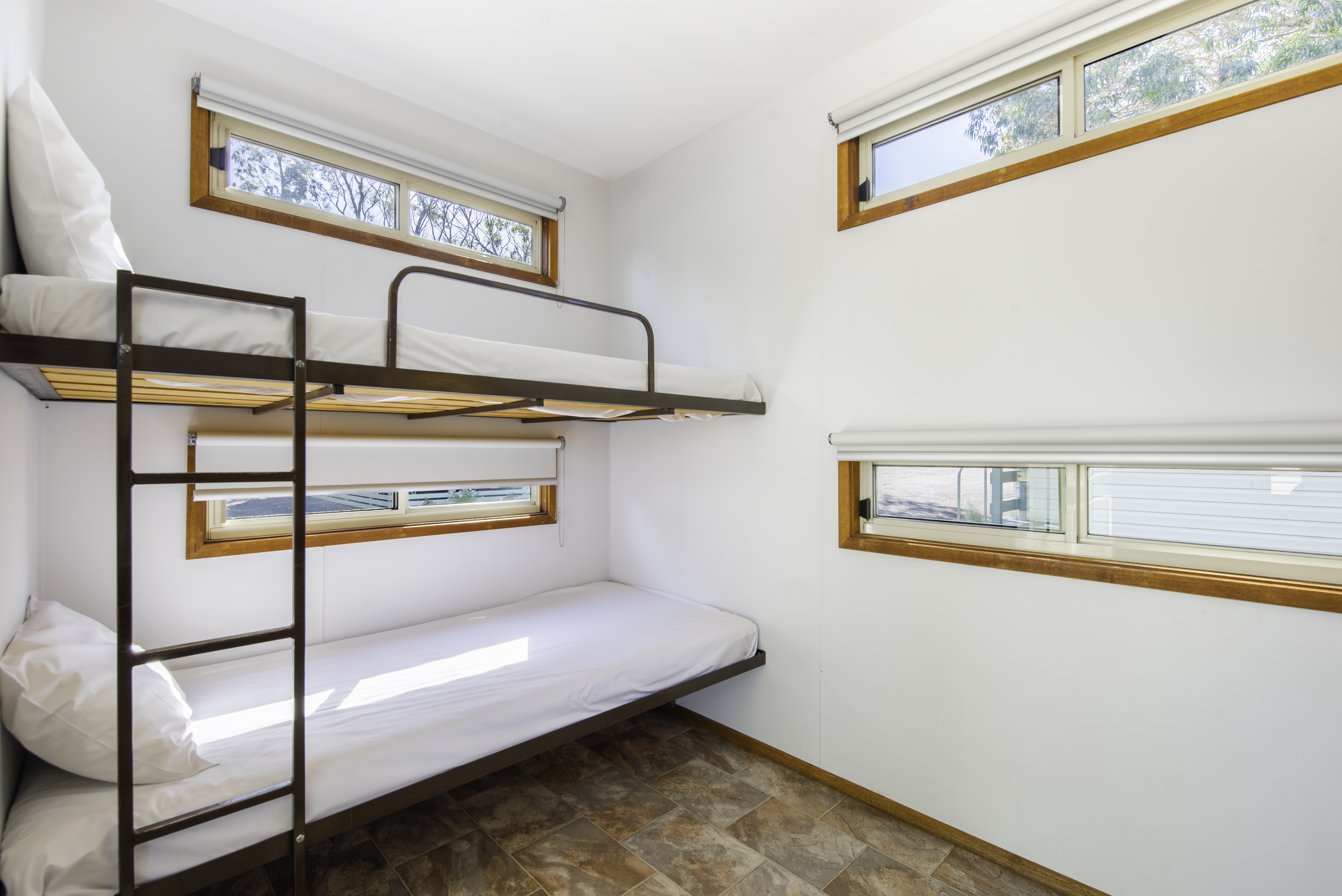 Australian Standards relate to the use of bunk beds and state that: "Children under the age of nine years should not use the top bunk. Children must not play on top bunk." Please take this into consideration when making your booking.