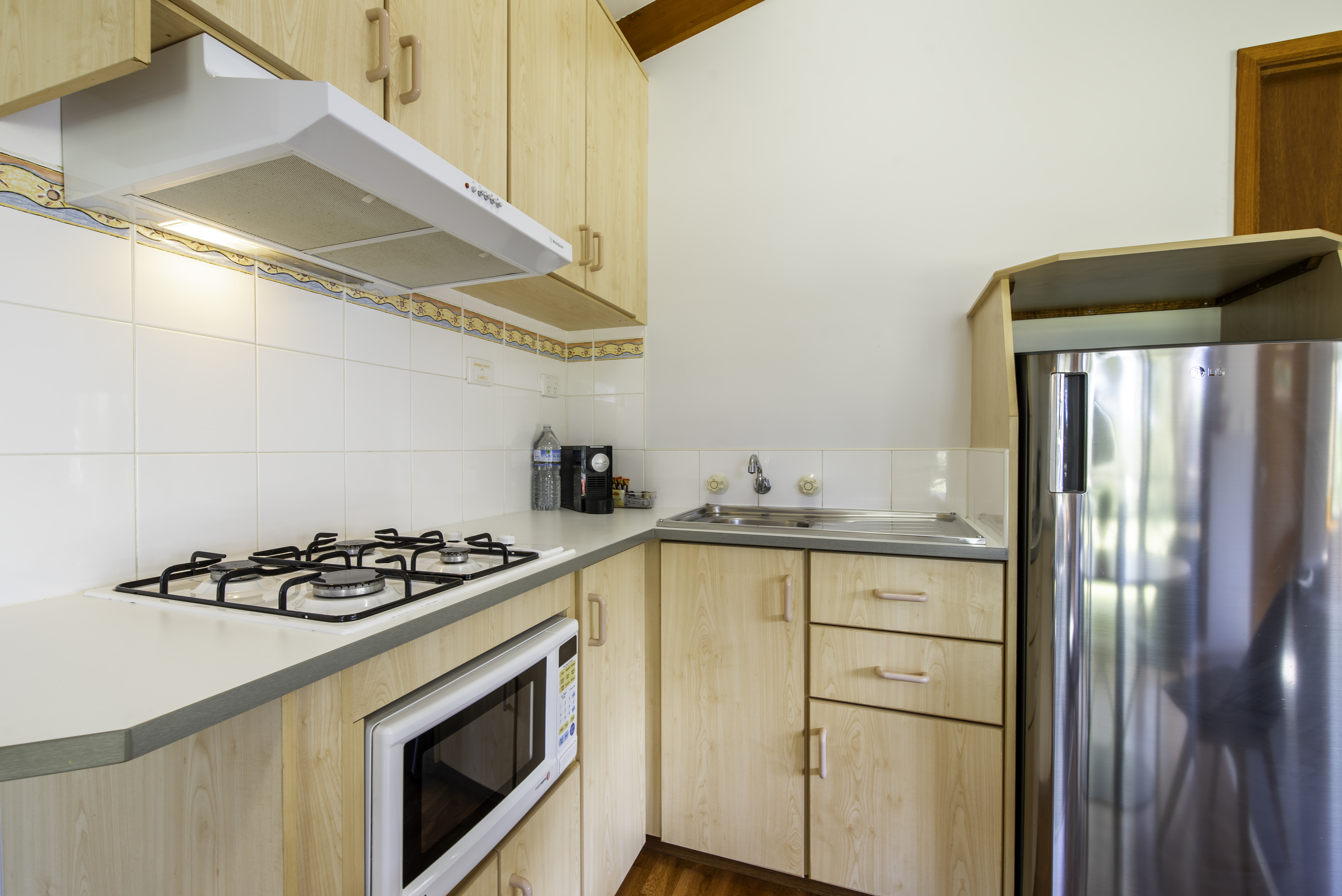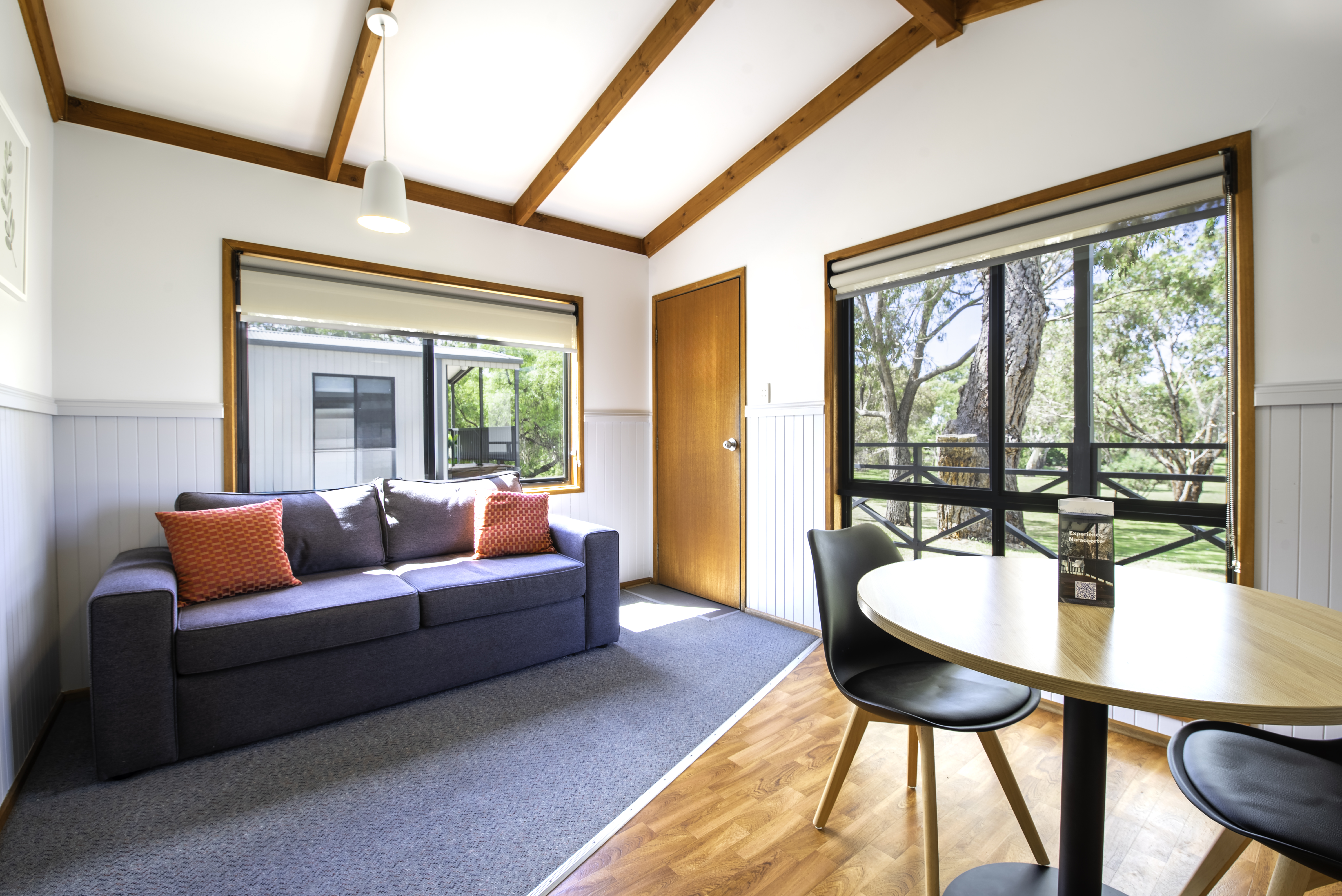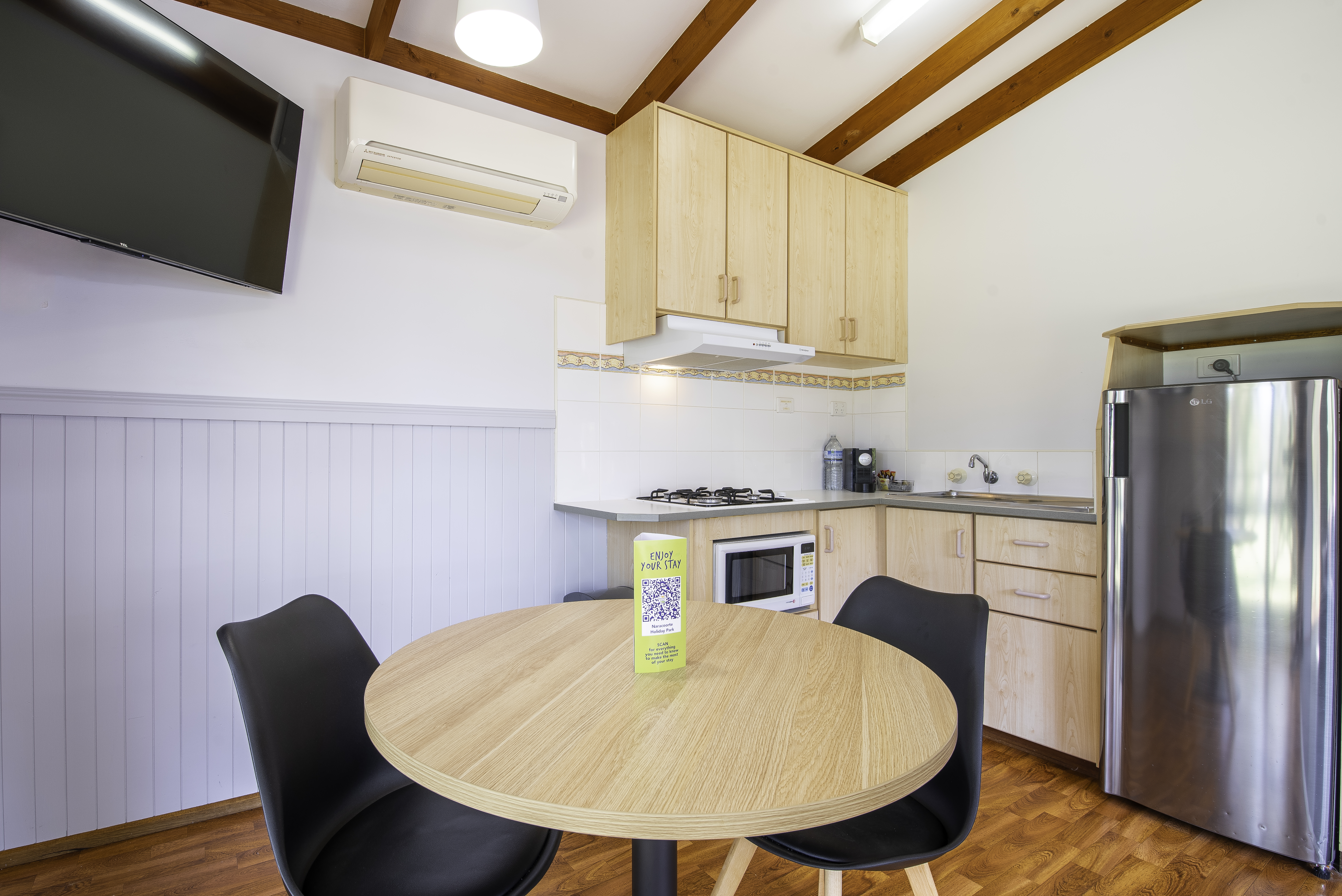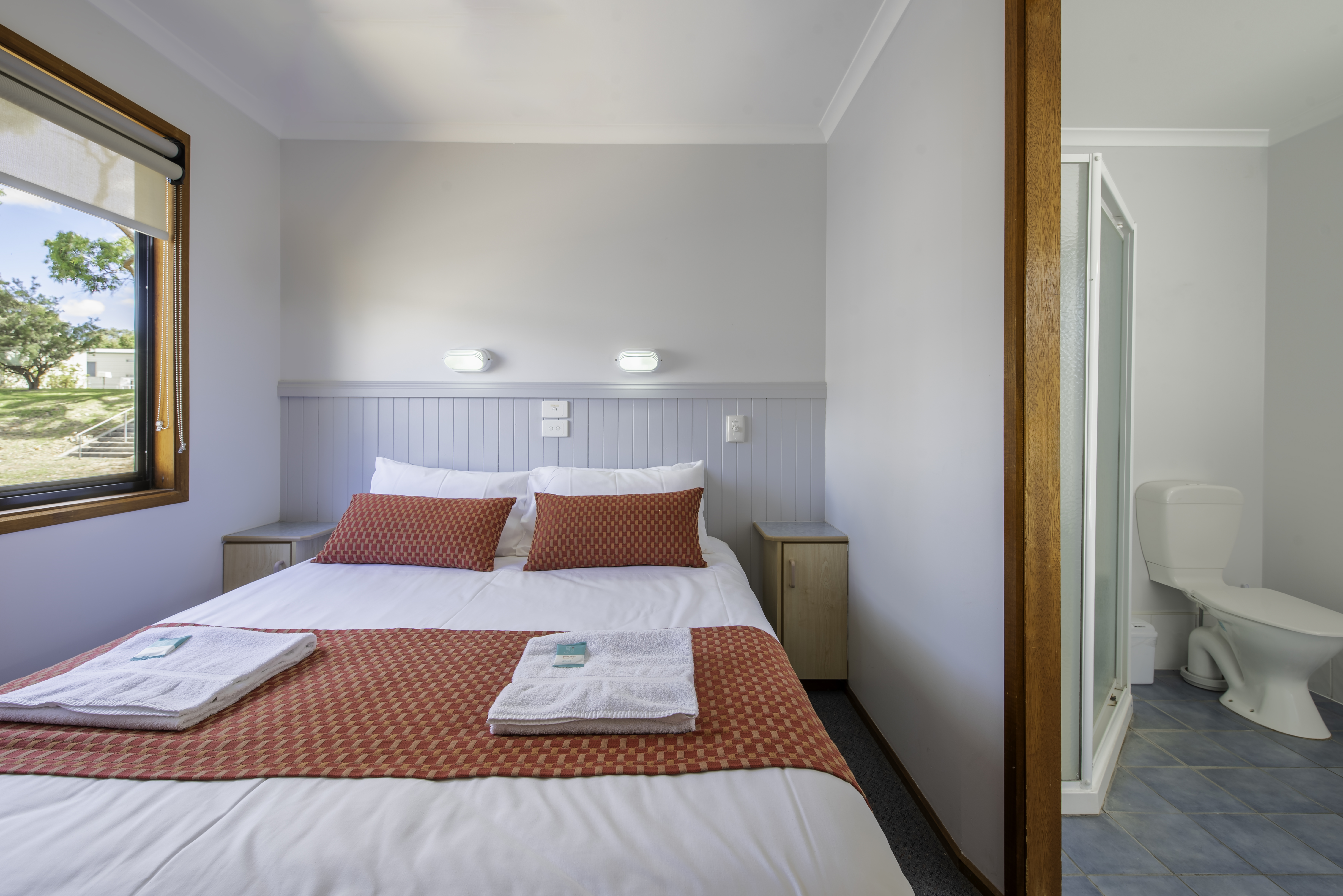 These cabins offer a serene retreat with all the comforts you need. Each cabin features 1 queen bed, linen provided. The bathroom contains free toiletries, toilet, shower, spa bath and towels. The living area contains a dining table, TV, seating area and reverse cycle A/C. The kitchenette contains a microwave, kitchenware, full refrigerator, electric kettle, cooktop and toaster. Book now for a romantic getaway!