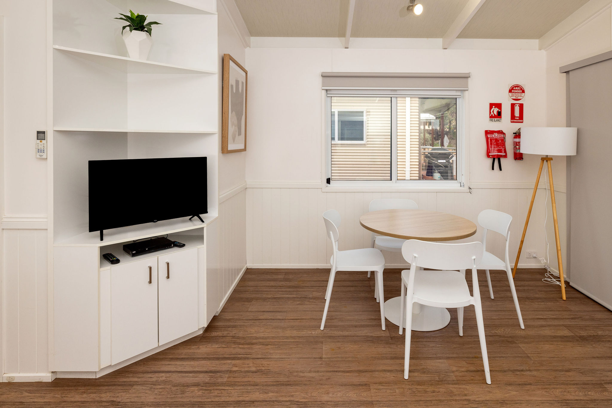 This open-plan villa offers a queen bed in the main bedroom and a tri-bunk in the second bedroom.