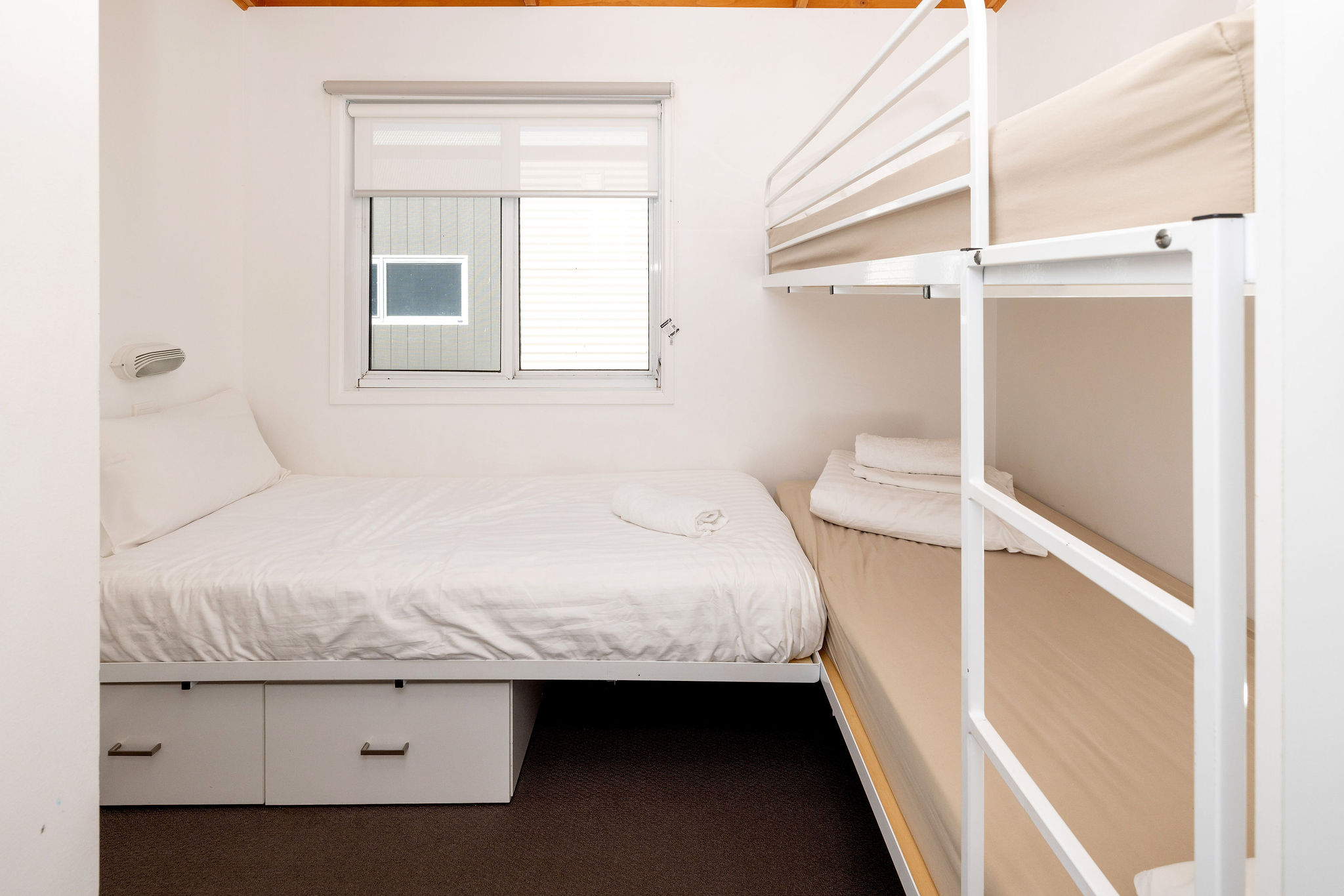 In this open-plan villa, you’ll find a queen bed in the main bedroom, two single beds in the second bedroom (which can be arranged as a king bed), and one set of bunk beds with a single bed in the third bedroom. The self-contained kitchen is equipped with a dishwasher, fridge, microwave, stovetop, and plenty of crockery and cutlery. Enjoy a separate dining area and a cozy living space with a TV. A Weber BBQ is also provided, perfect for relaxed outdoor dining. The bathroom includes a shower, toilet, and vanity, and the villa is air-conditioned to keep you comfortable throughout your stay.