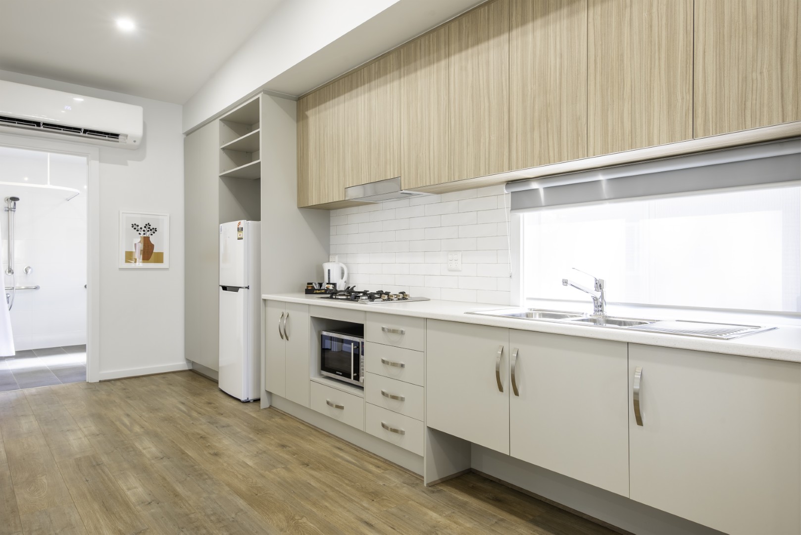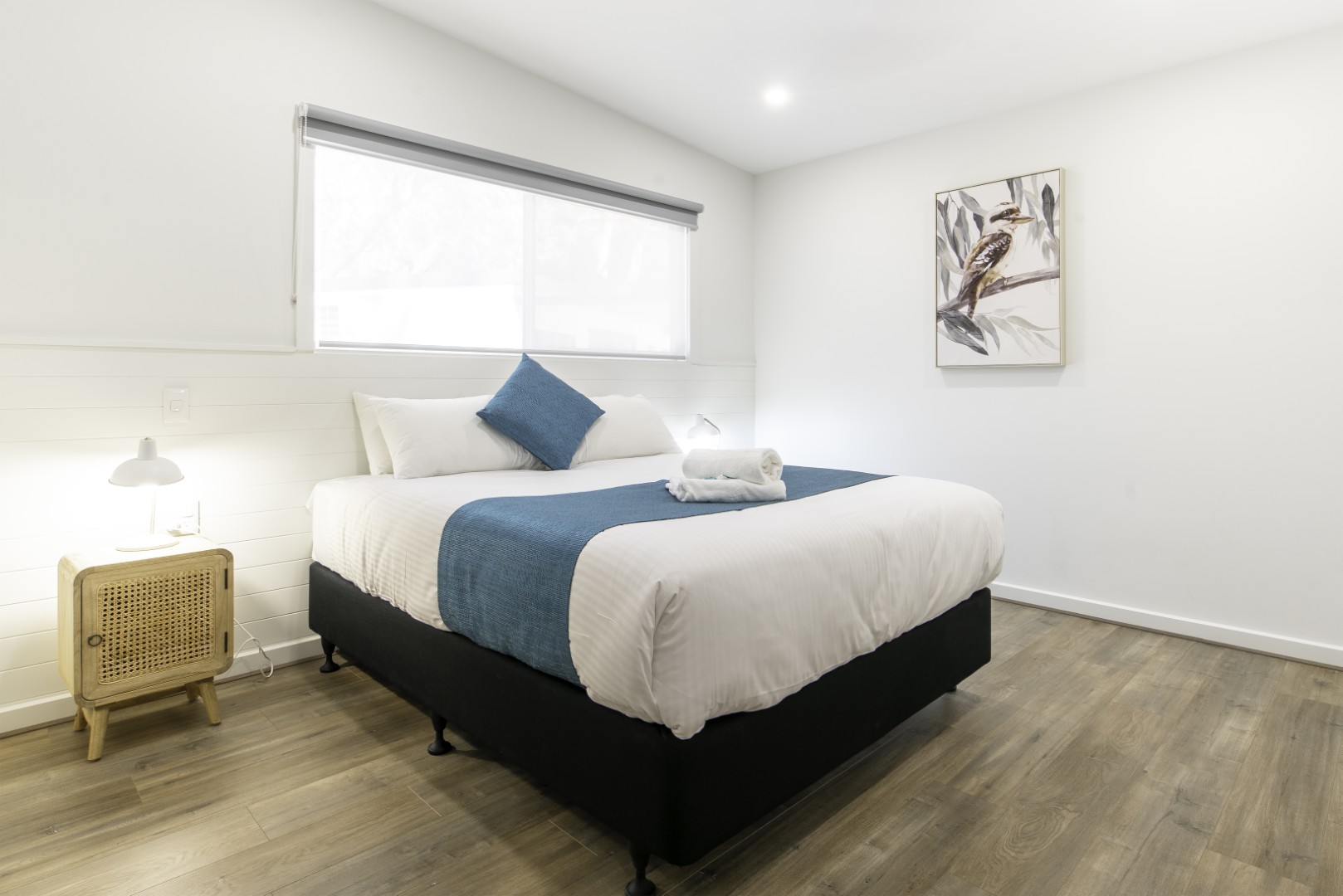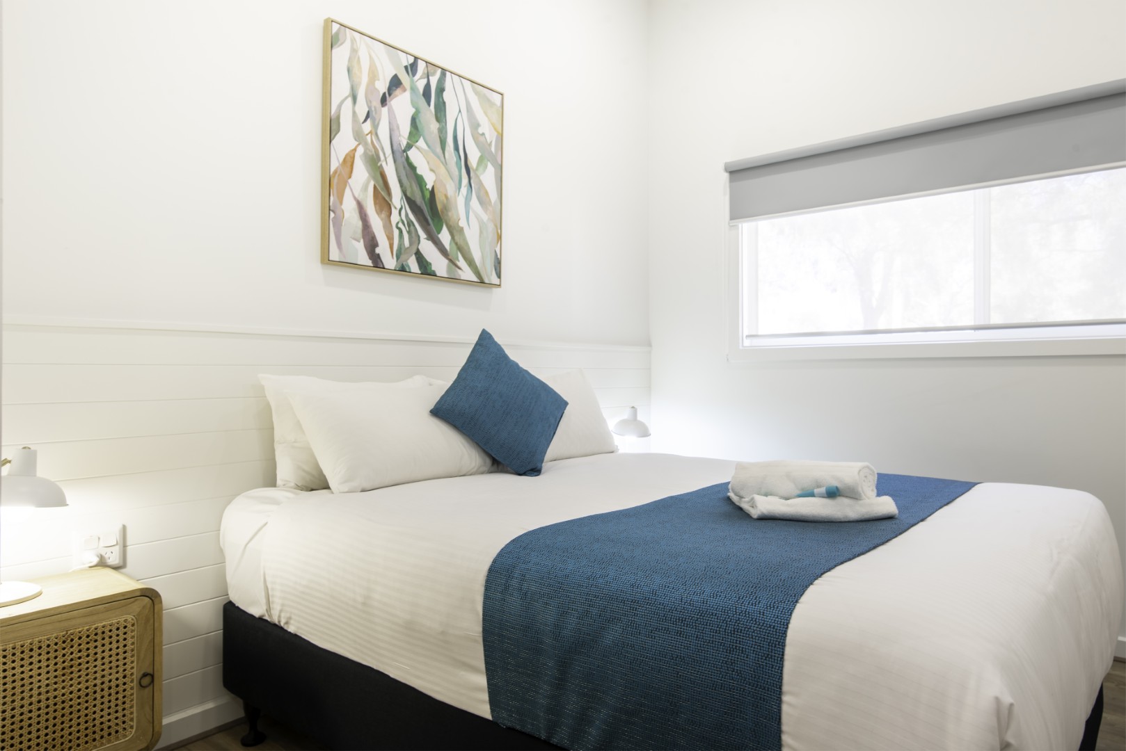 This inviting Double Cabin features two comfortable bedrooms, each with a queen bed, making it ideal for couples or small families. Linen and towels are provided, and guests can relax in the cosy three-seater lounge while enjoying the TV and free Wi-Fi. The space is climate-controlled with reverse cycle air conditioning. A well-equipped kitchenette includes a full-size refrigerator, microwave, electric kettle, toaster, cooktop (no oven), and all necessary utensils for preparing meals.