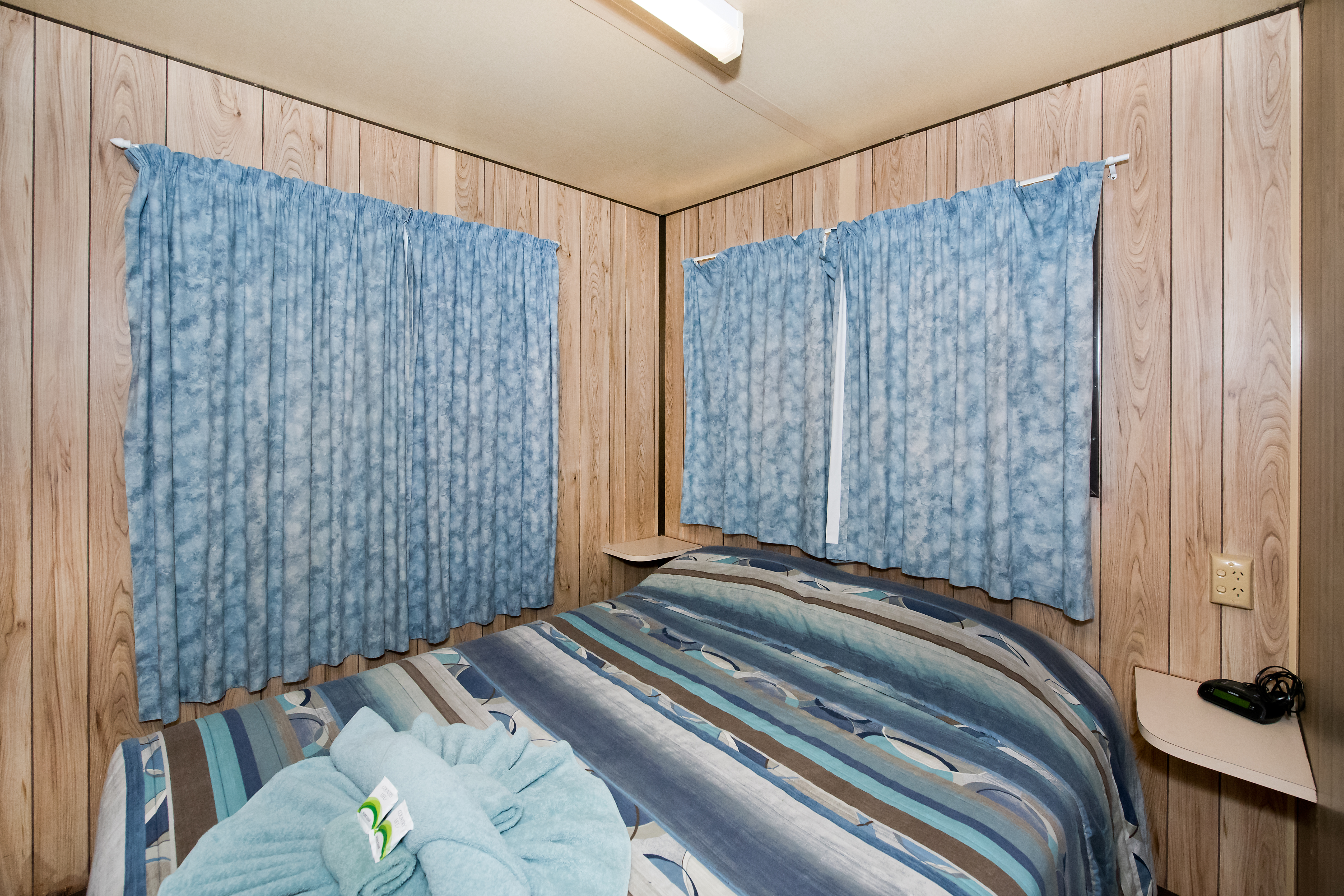 This accommodation features a main bed, ensuite bathroom, beds in living area with curtain partitioned off from main living area, kitchen including cooking utensils, crockery, cutlery, bar size fridge, stovette, microwave & television. The main bed is made up (for the first 2 people), linen is supplied for each additional child/adult booked.