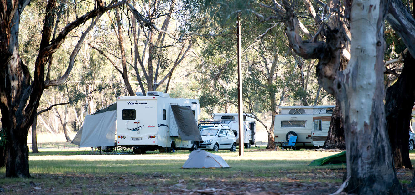 Lower level sites on our floodplain, amenities, camp kitchen, grass and gravel sites, pump track, play ground and river all very close.