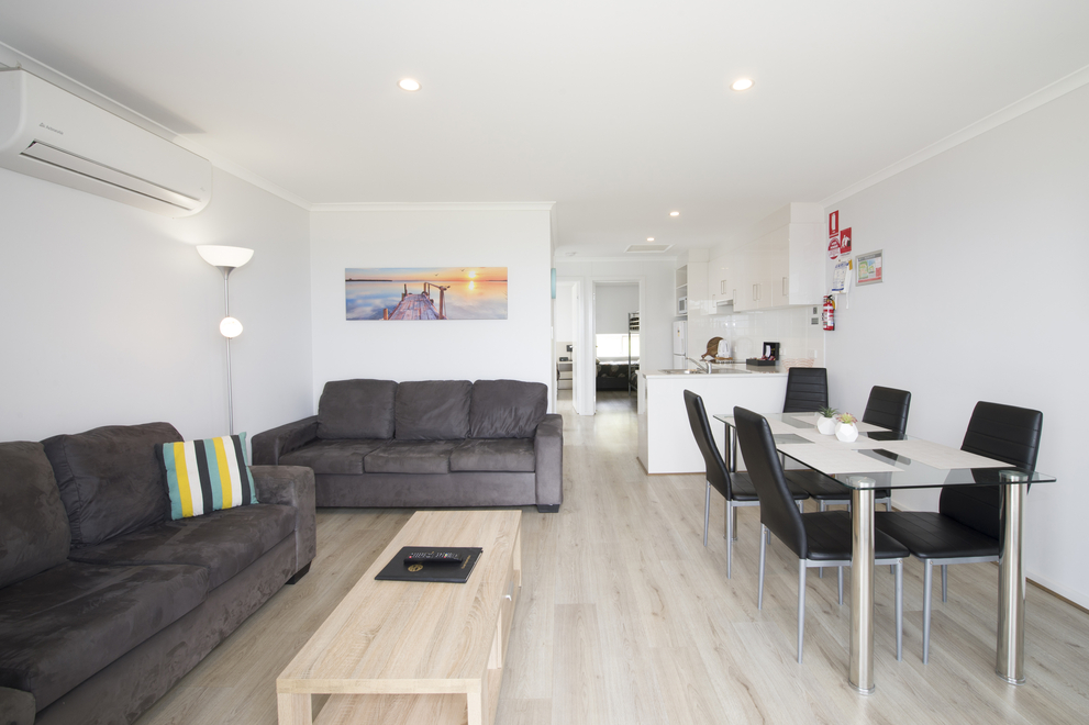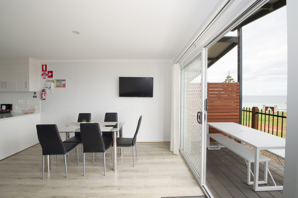 Enjoy stunning views of Port Hughes Beach from the comfort of your unit. Overlooking the Port Hughes Pier, our ocean view units are fantastic for those that love the sound of the ocean and the sea breeze. These spacious units sleep up to 5 people, featuring a queen bed in the main bedroom and 1 single bed and 1 set of bunk beds in the second bedroom, making them ideal for families and groups. With a modern and fully equipped kitchen, you’ll be able to whip up dinner with no hassle at all. There’s plenty of space to enjoy meals together as well, whether it’s inside using the dining room or out on the patio on the outdoor setting. The cabin is equipped with HD TV, High-Speed Internet, and streaming services, ensuring entertainment and connectivity during your stay.