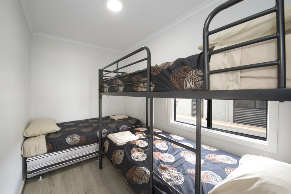 Overlooking the coastline of Moonta Bay, these spacious self-contained villas are the perfect place to set up for a beach-view holiday. Our three-bedroom Beach View Villas sleep up to seven people and are equipped with a queen bed in the main bedroom, a king bed that can split into two singles in the second bedroom, and a single bed plus a set of bunk beds in the third bedroom. Enjoy the comfort of your villa and come together in the open-plan living area to watch a movie. The villa is equipped with HD TV, High-Speed Internet, and streaming services, ensuring entertainment and connectivity during your stay. When you get hungry, make the most of the fully equipped kitchen for those delicious family meals, or head outside to cook on the Weber BBQ while taking in the coastal views. If you’re looking for a bit of quiet time to dive into a book, sneak off to the study area so you can read in peace. The Beach View Villas also have large bathrooms and separate toilets, so there won’t be any fighting about who’s going first. Please notify us if you are bringing a dog, as additional charges apply.