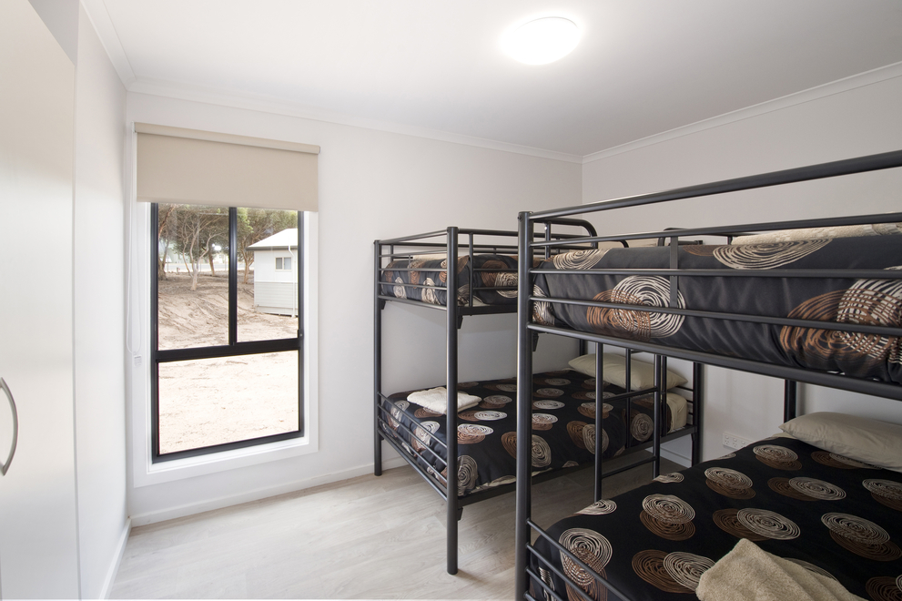 The main bedroom features a queen bed along with an ensuite bathroom, the second bedroom has another queen bed and the third bedroom has two sets of bunk beds. Linen is included on all beds.
