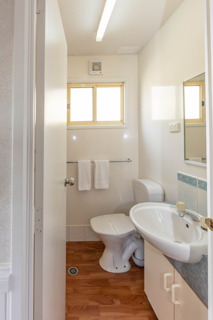 The living area is an open plan style with a lounge chair, reverse-cycle air conditioning, ceiling fans, TV, DVD player. The kitchen is fully equipped with a cooktop/oven, microwave, electric frypan, 210L fridge, crockery, cutlery and utensils all supplied.