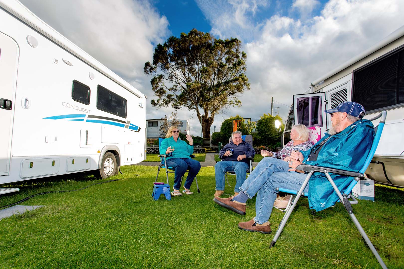 - Our powered sites may be large but please remember only one set up (one caravan, tent, motorhome or camper trailer) and 6 people max are allowed per site.