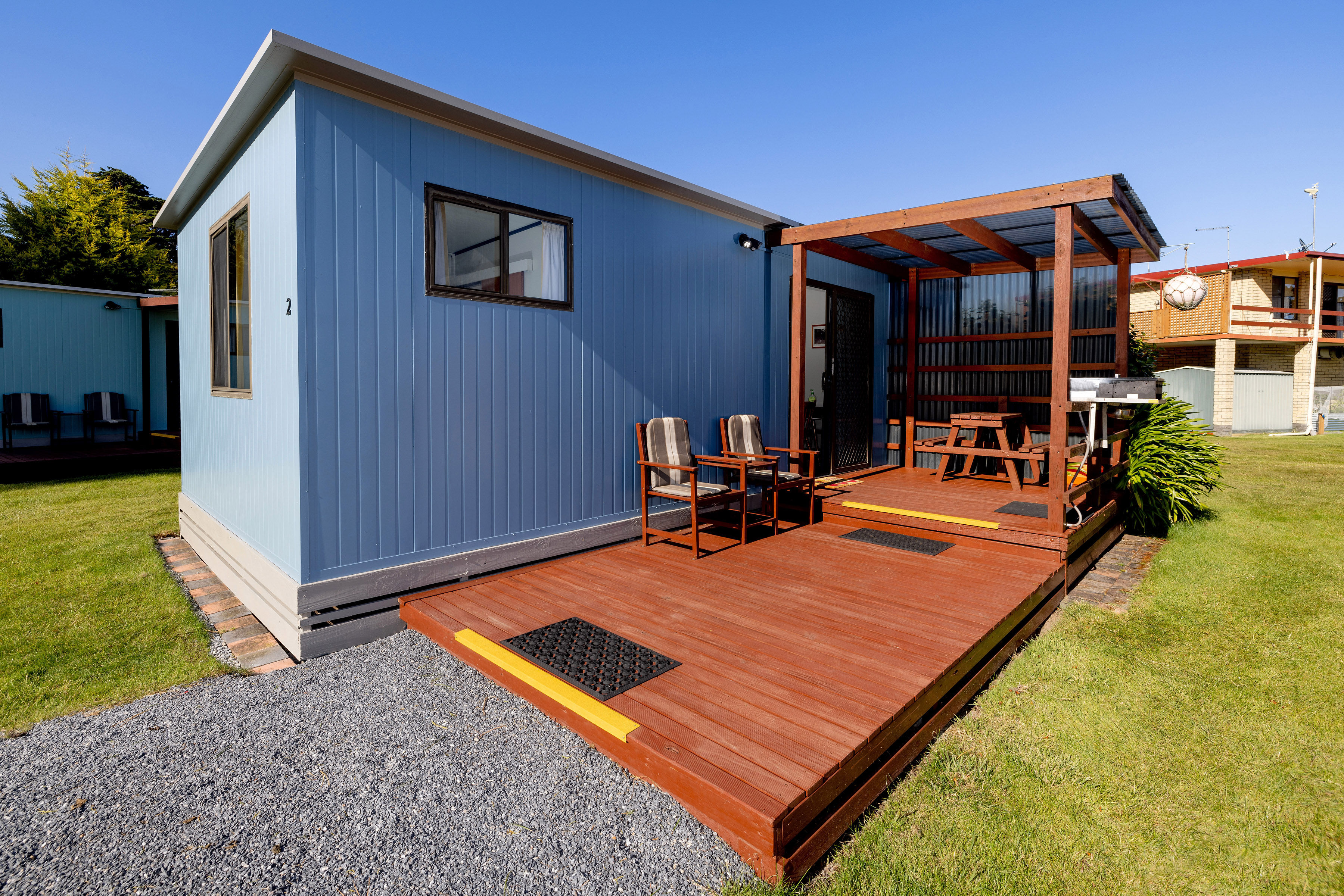 Explore the history of the Central North of Tasmania. Just 1 kilometre from Bass Strait & on the Tamar River, Kelso is almost at the top of the river & just out from the park is one of the best King George Whiting fishing grounds. Boat ramp at Kelso just 4 minutes' drive away. Visit some of the Tamar Valleys Vineyards, Seahorse World & Platypus House & the historic Beaconsfield Mine & Heritage Centre. At the end of the day, enjoy a glass of local wine & cook your freshly caught seafood on your cabin BBQ.